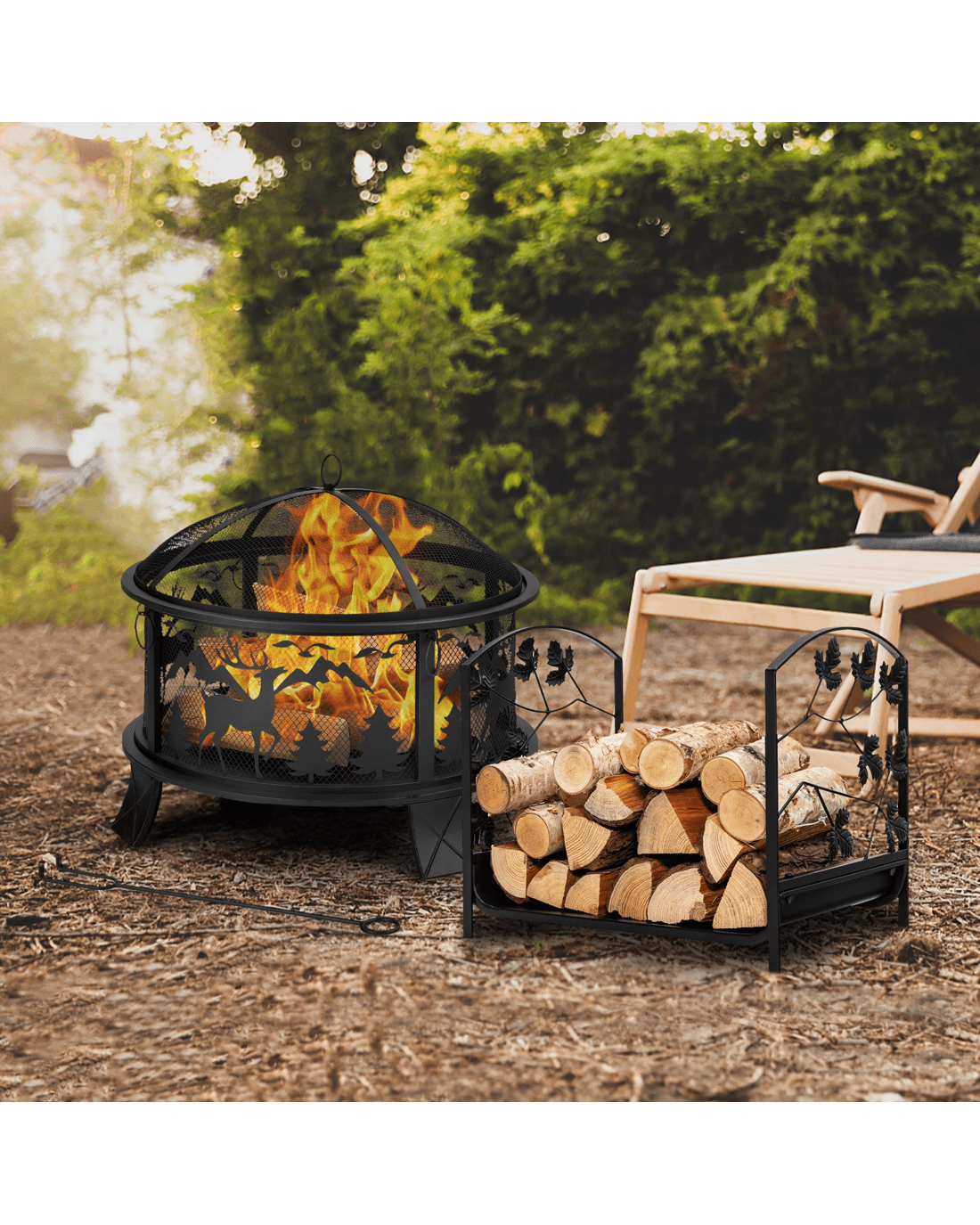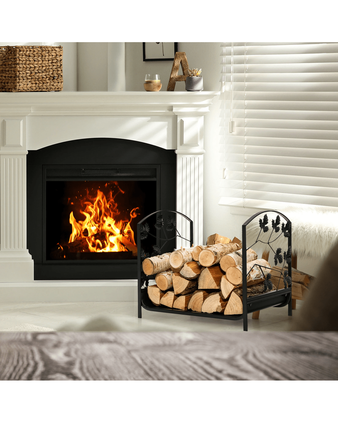 Costway Firewood Storage Rack Steel Fire Wood Organiser - Black
