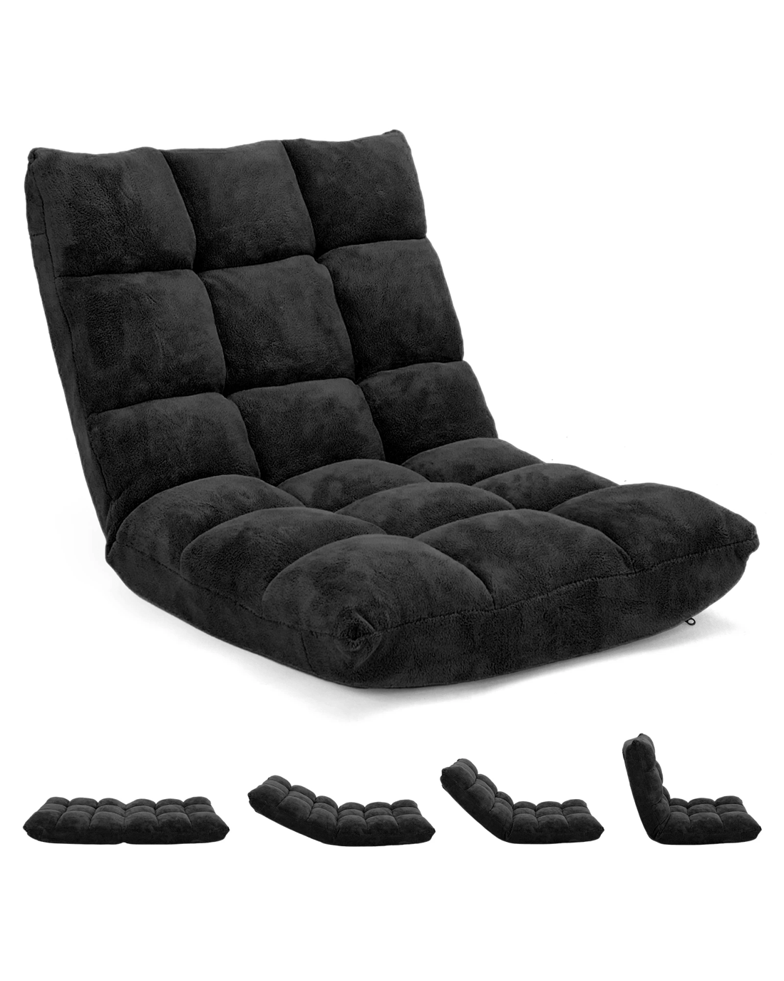 Costway Floor Chair Lazy Sofa Velvet Chaise Lounge Lazy Recliner w/14-Position Adjustable Back - Black