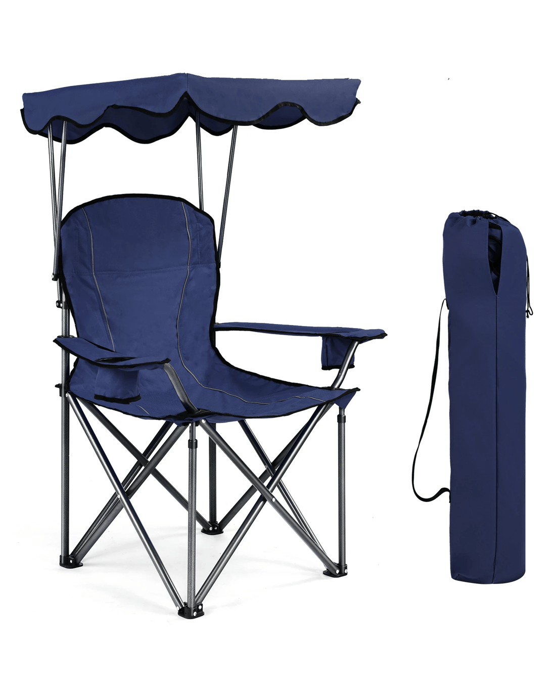 Costway Foldable Camping Chair w/Canopy Outdoor Fishing Picnic Beach Armchair - Blue
