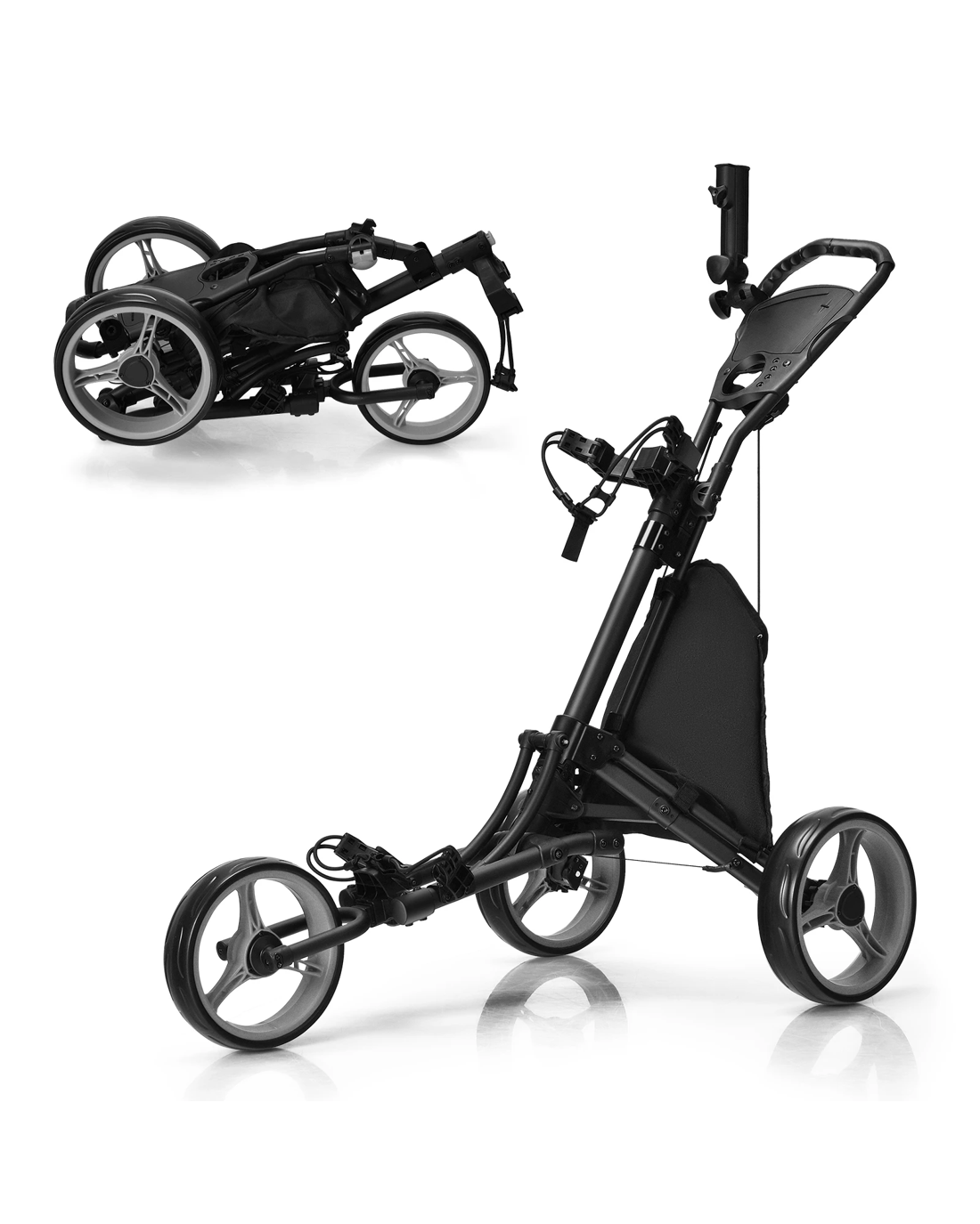 Costway Foldable Golf Buggy Trolley 3 Wheels Golf Club Push Cart Adjustable - Grey