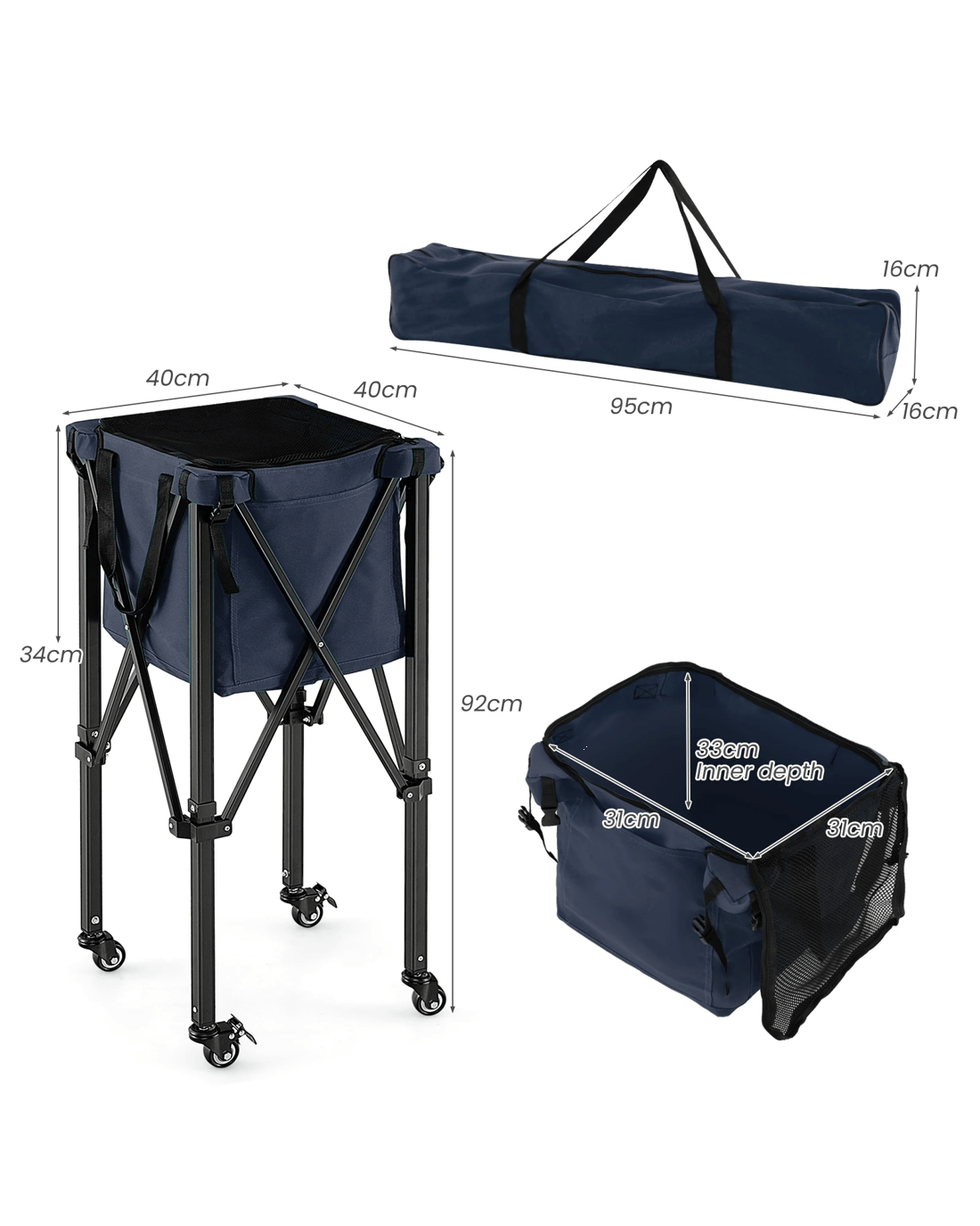 With a full aluminum tube frame, this tennis ball cart is lightweight to transport and sturdy. Meanwhile, 4 universal wheels (2 are lockable) provide maximum maneuverability and stability. The large bag with double zippered mesh enclosure can hold up to 160 tennis balls and prevent your balls from spilling out while moving. Besides, the 2 side pockets offer extra storage space for your personal items. And the bag with 2 convenient handles can be removed and used alone. What's more, you can simply fold the tennis ball cart and store it in the included storage bag for compact storage and convenient carrying.