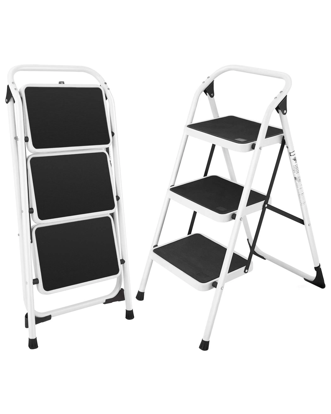 Change the bulb or reach high cabinets quickly by means of this 3-tread ladder. Anti-Slip pedals free you from the risk of falling over. Wide platform is supposed to accommodate a variety of people. More, the ladder adopts thickened iron material, lightweight for effortless carrying while sturdy enough for firm support. When not in use, it can be folded flat thereby making for an easy storage in a corner, without occupying much space. And it is designed with user-friendly hand grip, which can not only bring convenient in climbing but also play a role as protector to you. Other highlights include stable triangular structure, solid rivet reinforcement and higher load capacity. Bring this multifunctional ladder home and simplify your life.