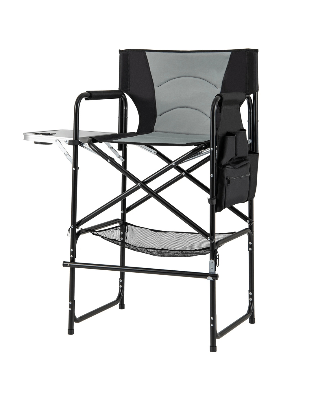 Costway Folding Camping Chair Portable Directors Chair Metal & Oxford Fabric Tall Makeup Artist Chair - Grey