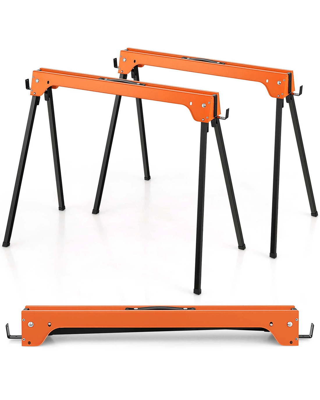 Costway Folding Sawhorses Pack of 2 Portable Metal Trestle Stand 600kg Capacity