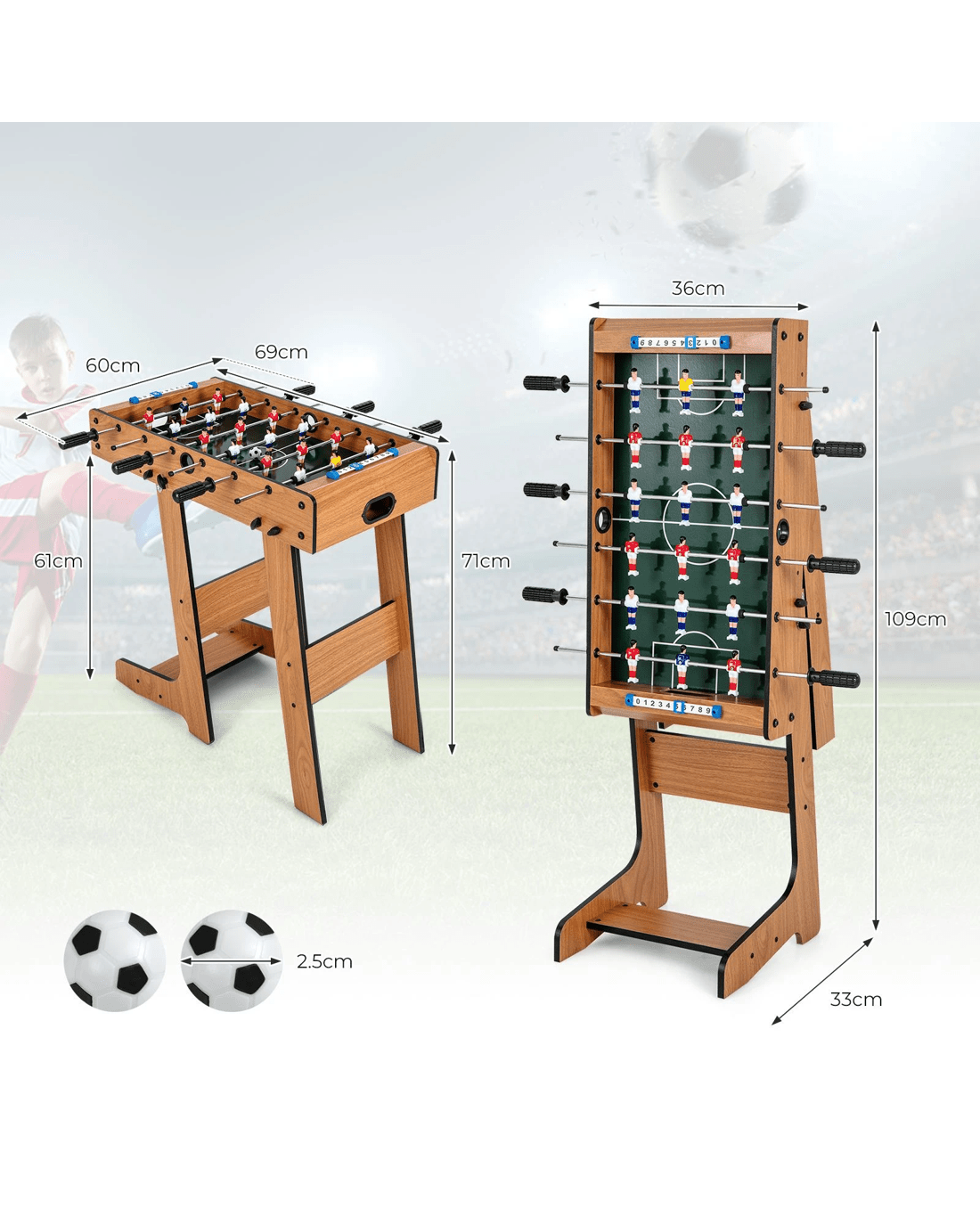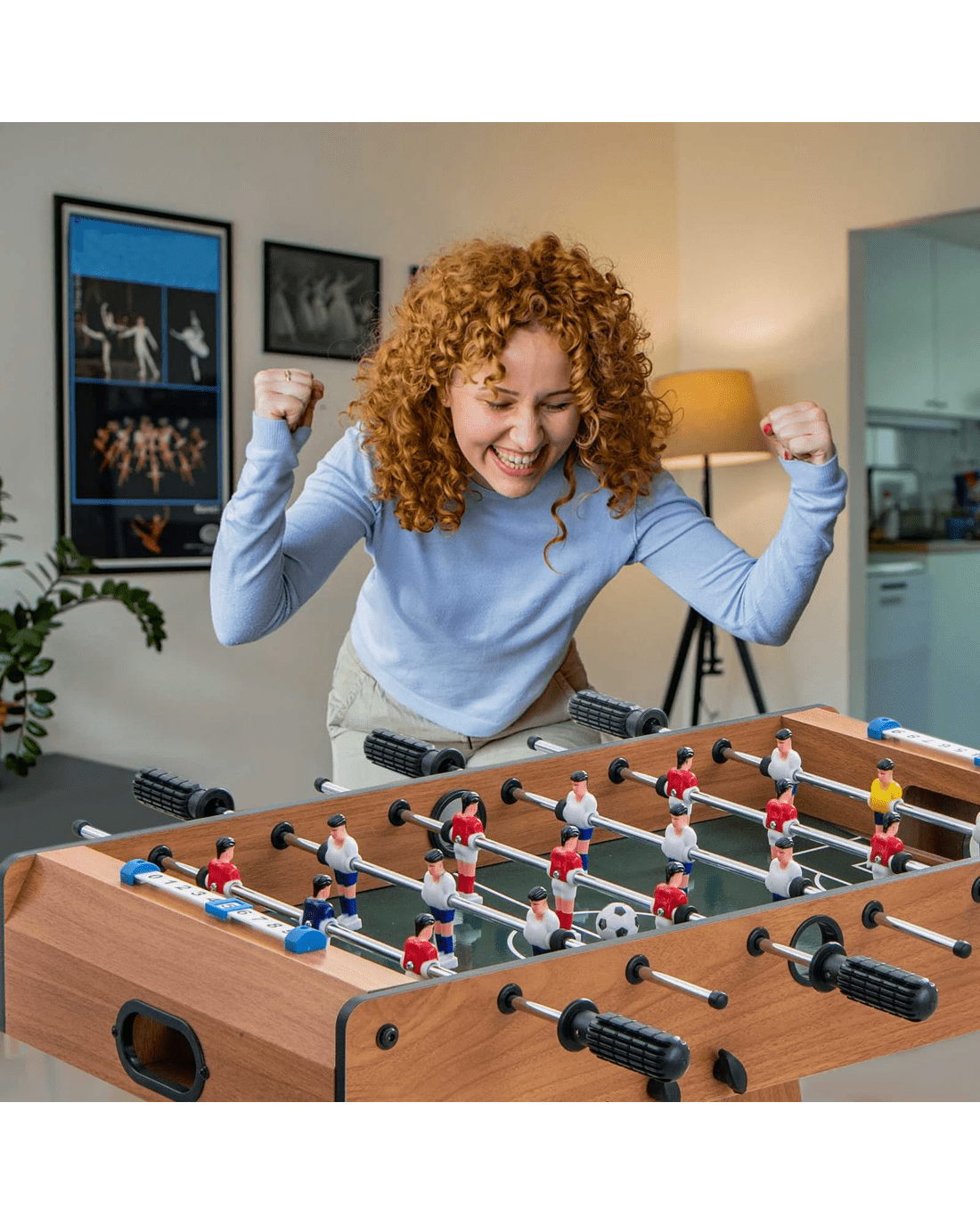 The folding football table will give you the playing experience you are looking for with the convenience of easy storage. The soccer table brings fun to any setting, with 6 handles offers ample space for 2 players to compete. It is designed for both little ones and adults to play. Whether you're just starting to learn how to play football or an already seasoned player, anyone can join in the fun. The lightweight and portable design is convenient for you to take it to arcades, game rooms and other entertainment areas. Stylish and attractive looks make it a popular gift idea for friends, little ones or parents. Start an exciting competition with your friends and family next time!