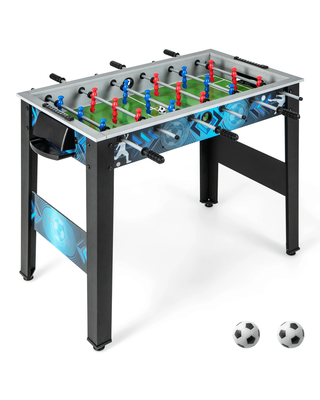 Looking for a thrilling foosball experience? This high-quality table delivers. With its cool pattern design, colorful soccer players, and realistic field, every detail is crafted for an authentic gaming experience. You'll feel like you're right on the field with friends and family. But it's not just about the fun - it's also easy to use. The comfortable grip handle ensures smooth control, while the non-slip design enhances precision. The adjustable leg leveler allows for easy height adjustment and stability on any surface. Besides, this foosball table is perfect for parties, family activities, or friendly office competitions. It offers endless fun and bonding opportunities. Additionally, the 4 supportive legs and non-slip footpads keep it steady during intense gameplay. Plus, the clear score counter and convenient goal box add excitement to each match. It's the perfect opportunity for family interaction and quality time together.