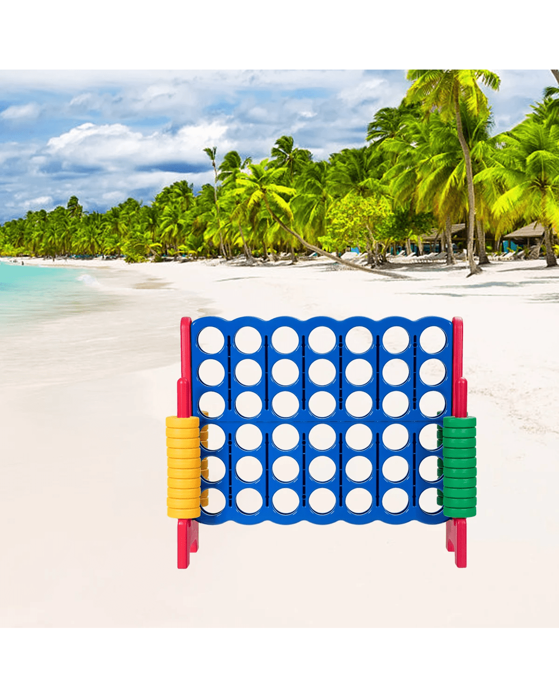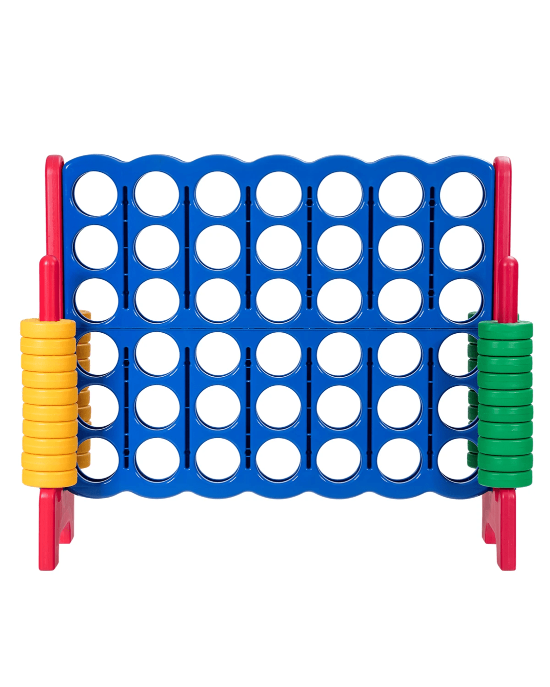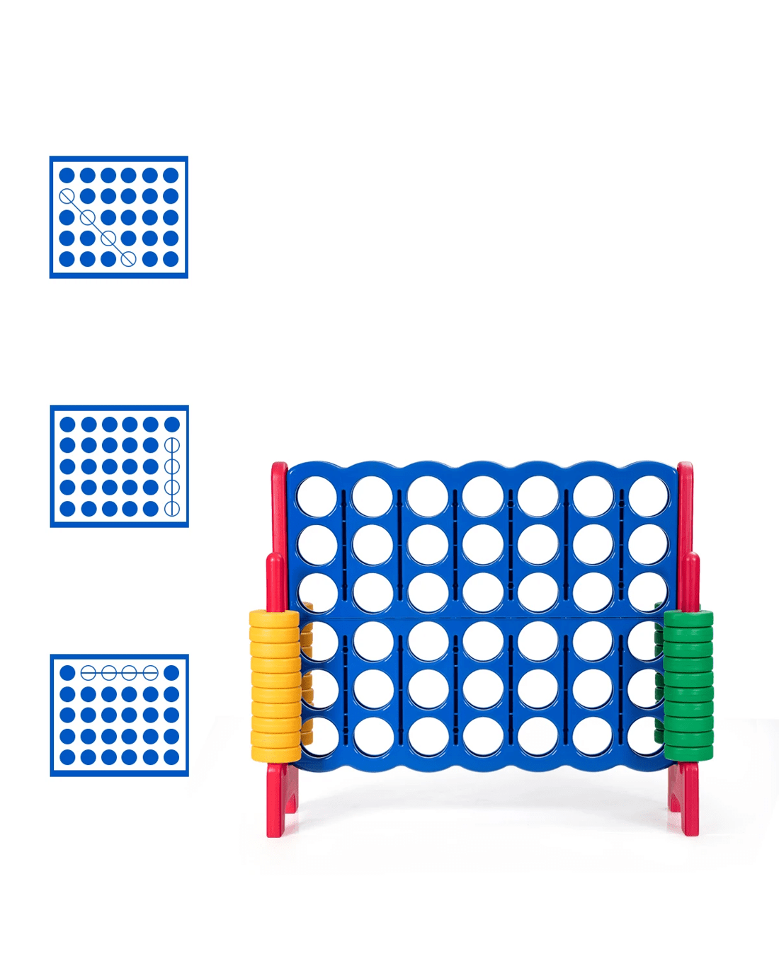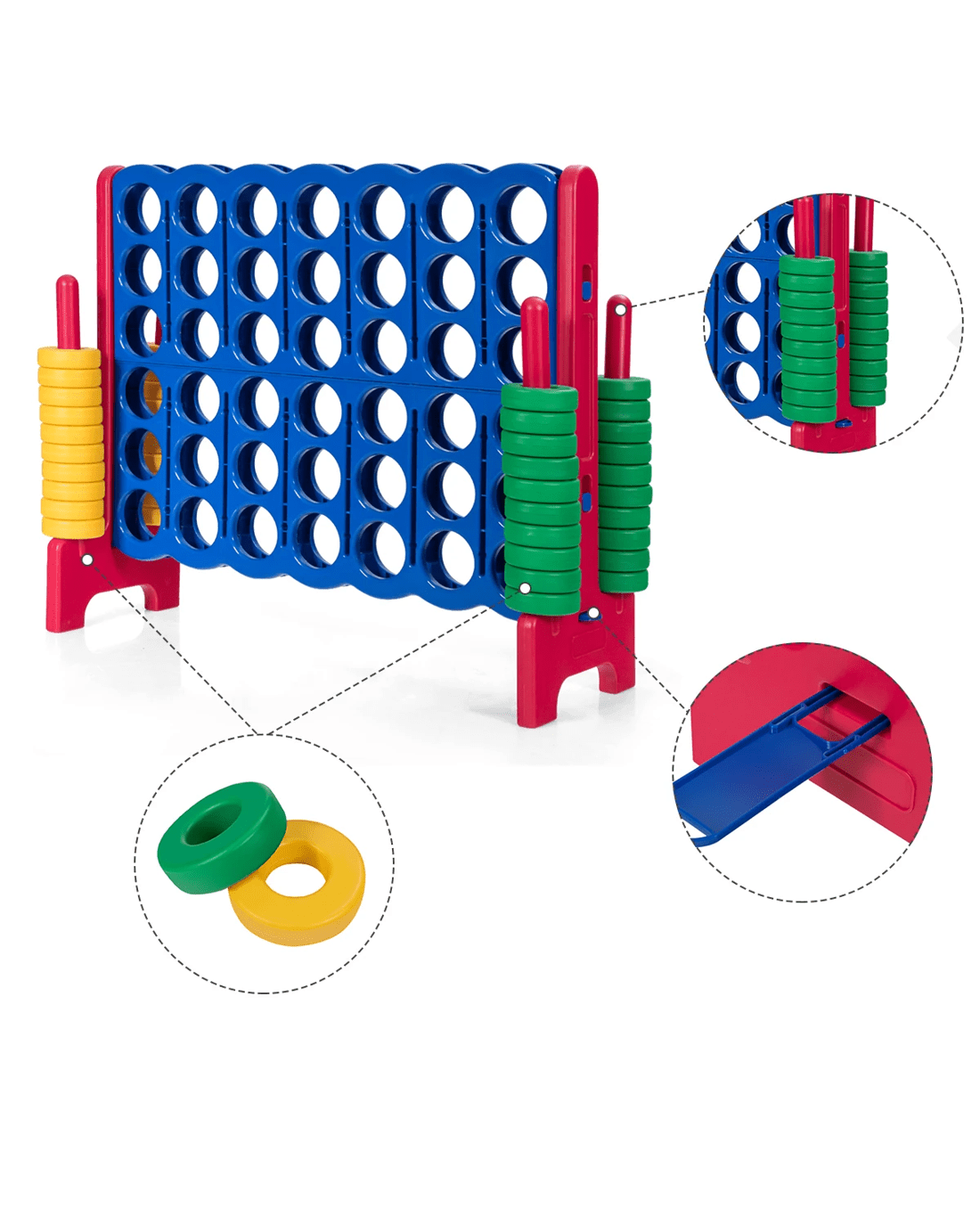 Take a look at the jumbo 4-to-score giant game set we've prepared for you and your little ones. 104cm height makes it suitable for outdoor game. And you can compete with your friends and enjoy the happy time with them. Our 4-to-score connect game is made of premium PE and PP materials, which provide a long service life.