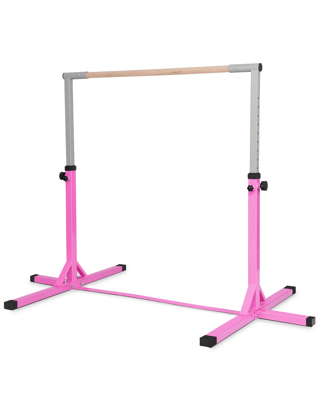 Costway Gymnastics Bar Junior Training Bar Horizontal Kip Bar Sports Adjustable Height - Pink