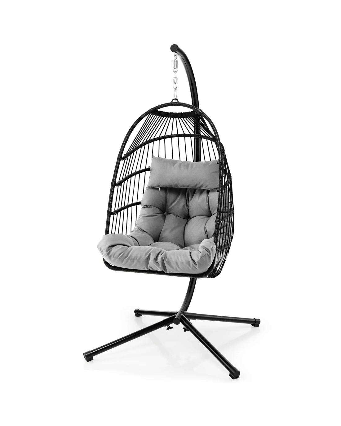 The chair is equipped with a head pillow and cushion, which are both soft and comfortable. And the cushion cover can resist to daily splashes so the maintenance is quite simple. Furthermore, both the egg chair and swing stand are super sturdy with the heavy-duty steel frame which is anti-deformation and rustproof. The X-shaped base makes it stand with higher stability. The strap connects the chair to the stand, so you can hang in a safe range. In addition, the dust cover made of polyester Oxford gives considerate protection to the egg chair. If you are looking for a swing chair for relaxation, this swing egg chair will be a fabulous choice.