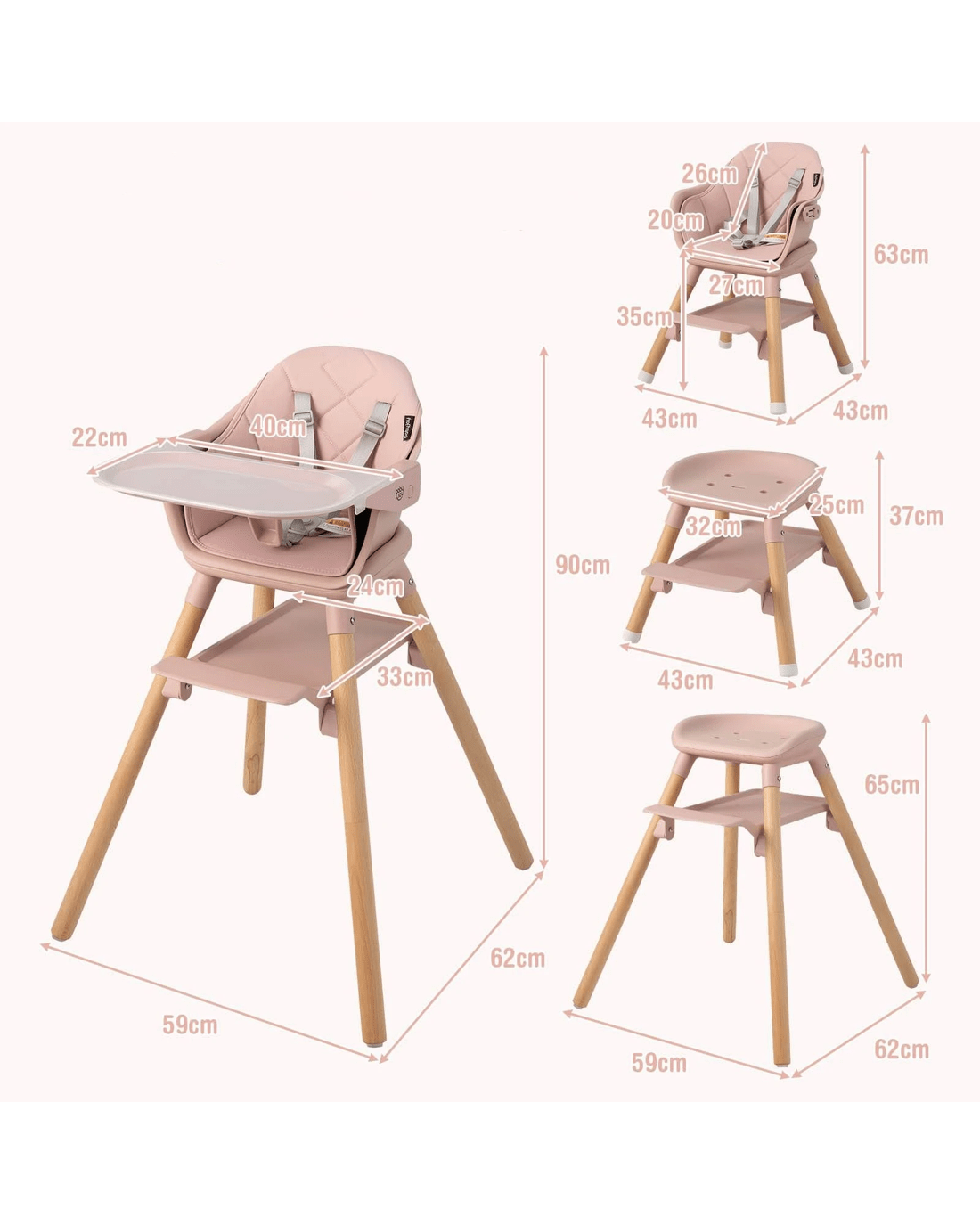 Sold by CostwayCostway High Chair Wooden Dining Seat Pink