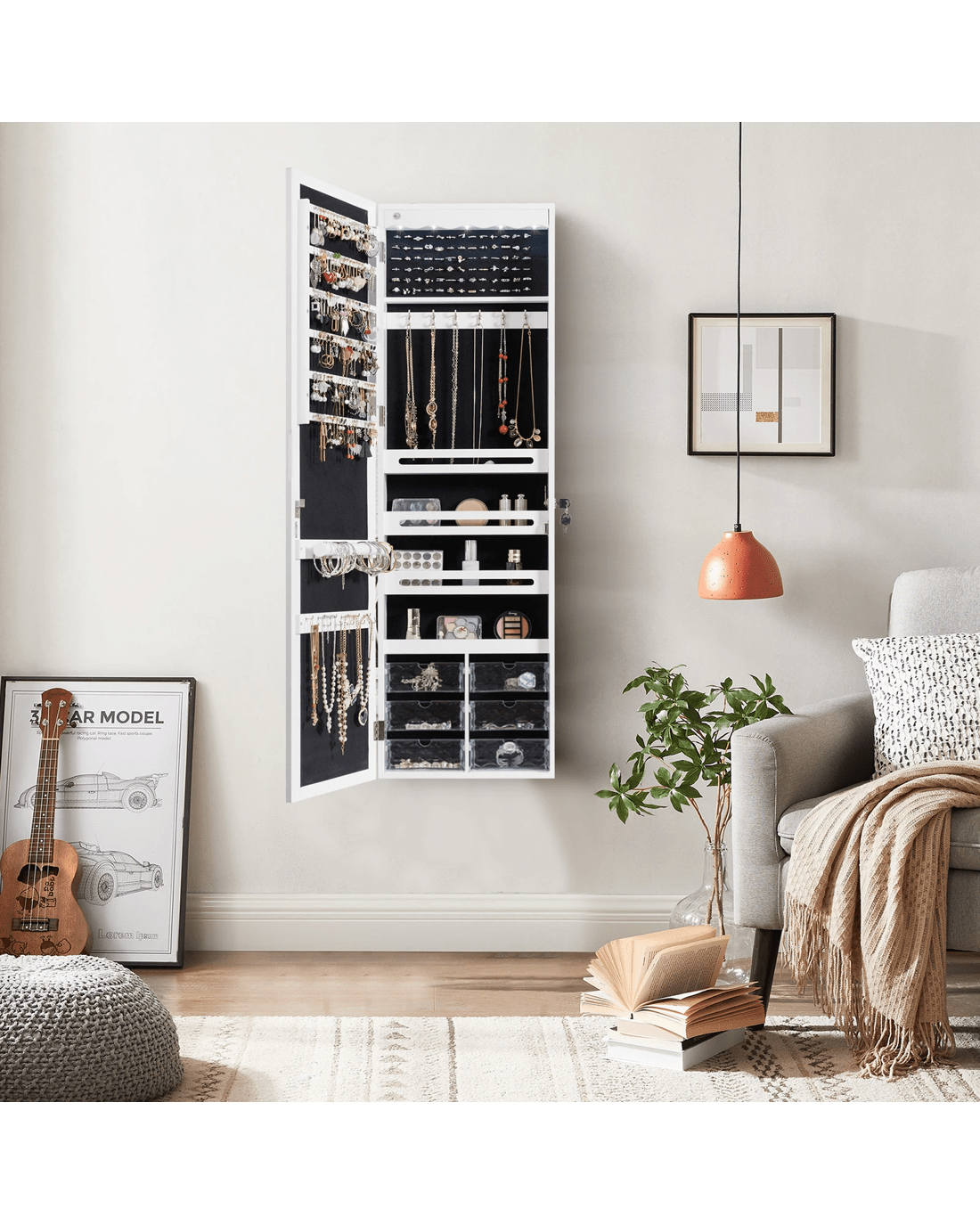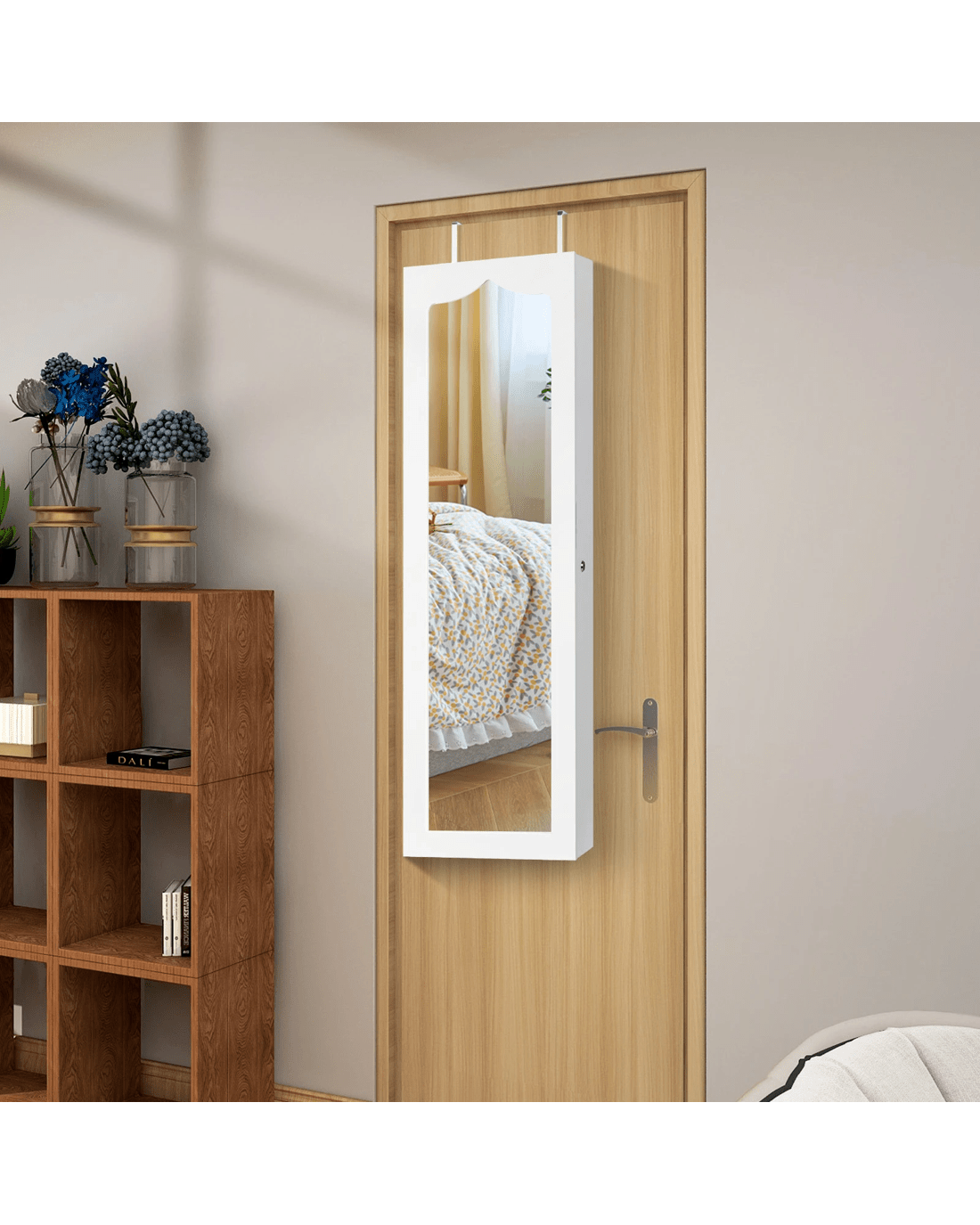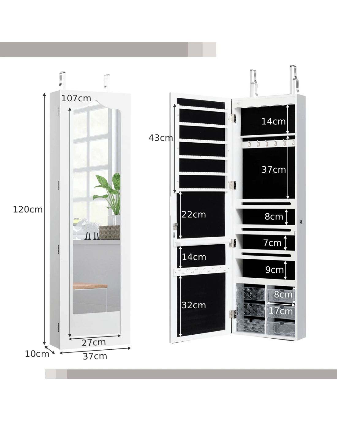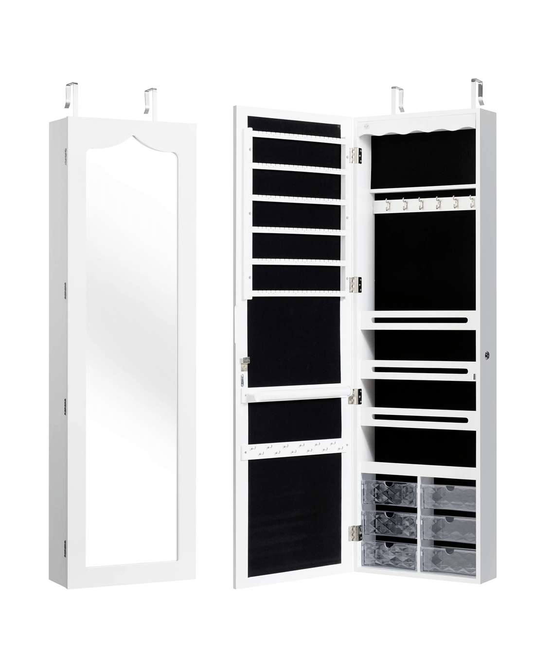Costway Jewellery Storage Cabinet w/Full Lenth Mirror Wall/Door Mounted Jewellery Organizer - White