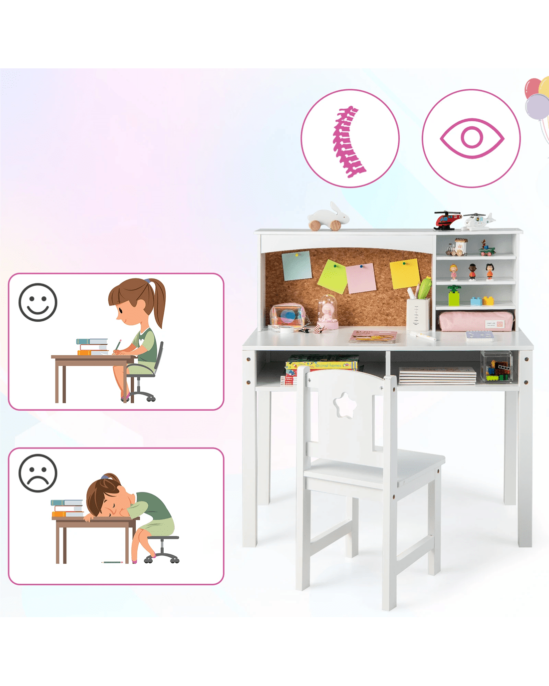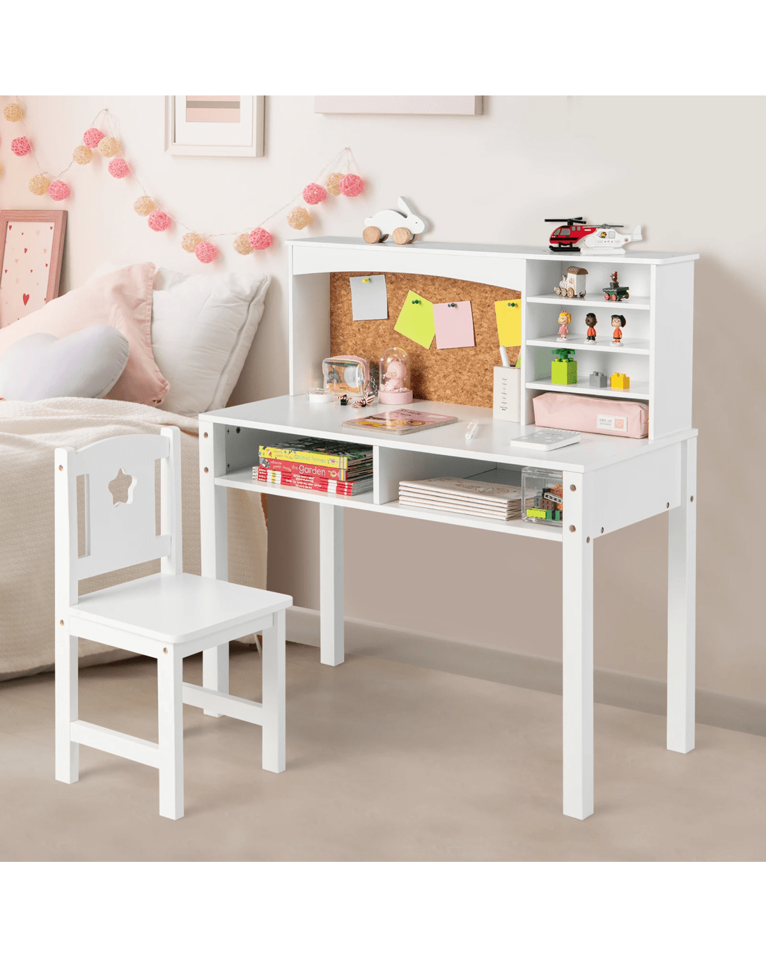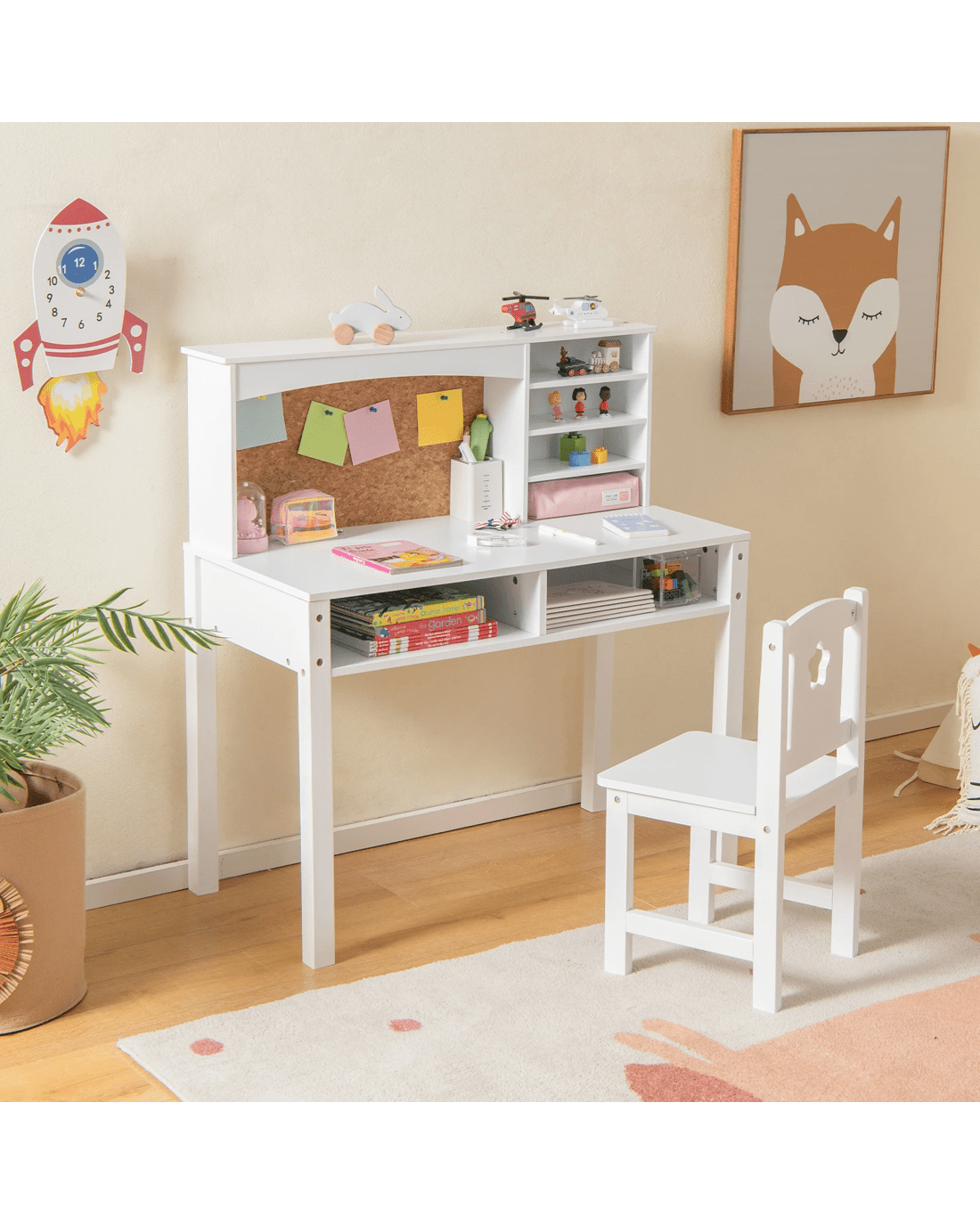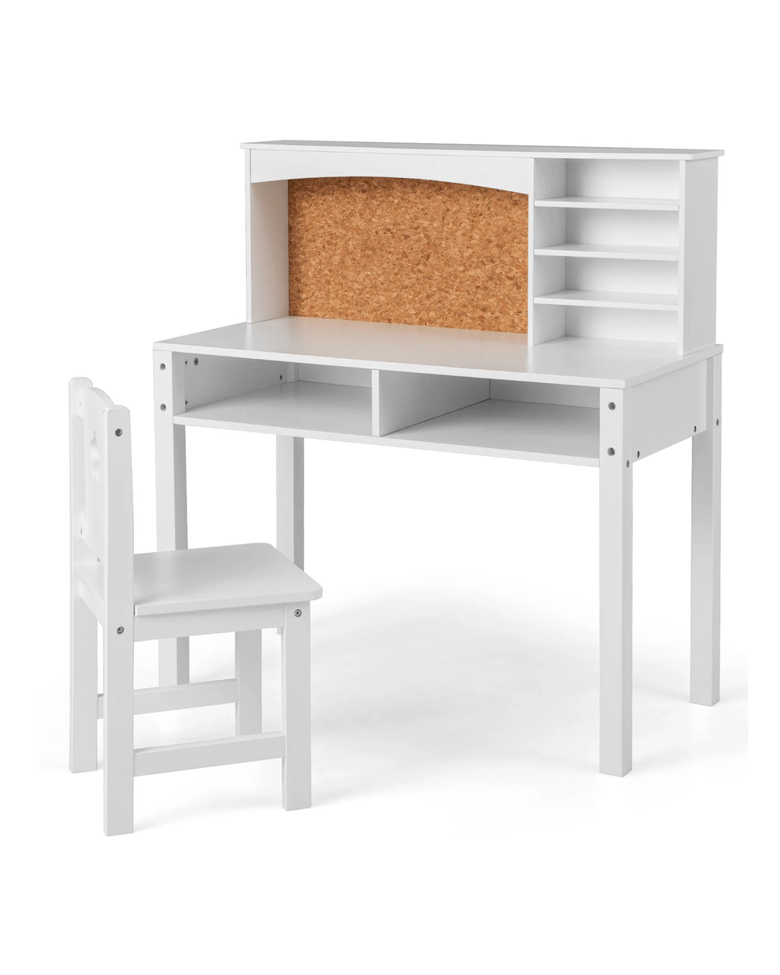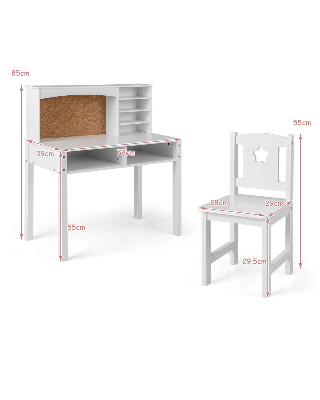 Sold by CostwayCostway Kids Desk & Chair Set Wood Study Table w/Bulletin Board White