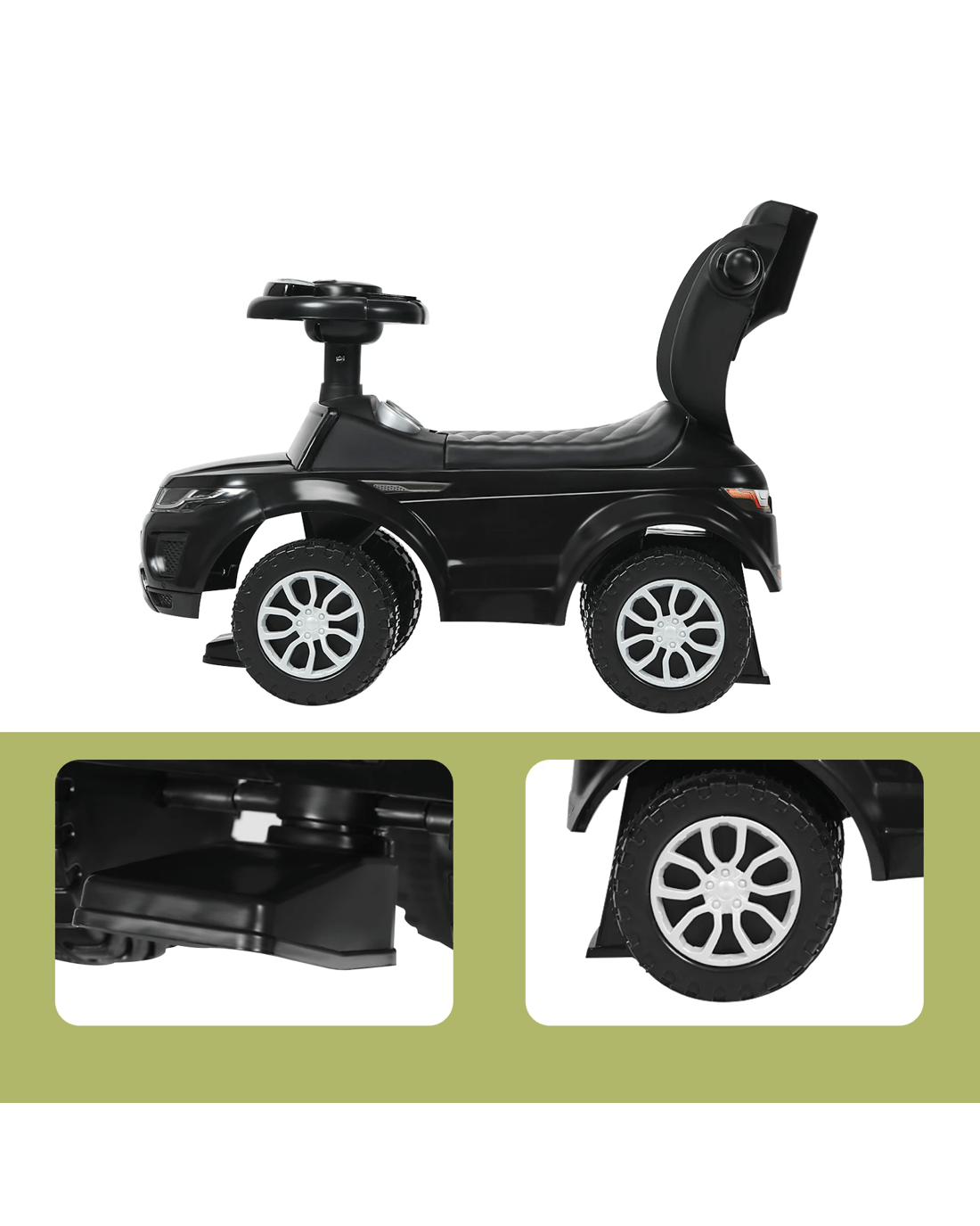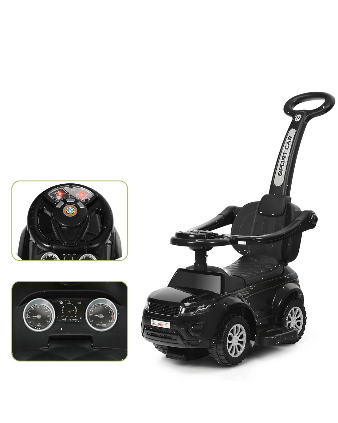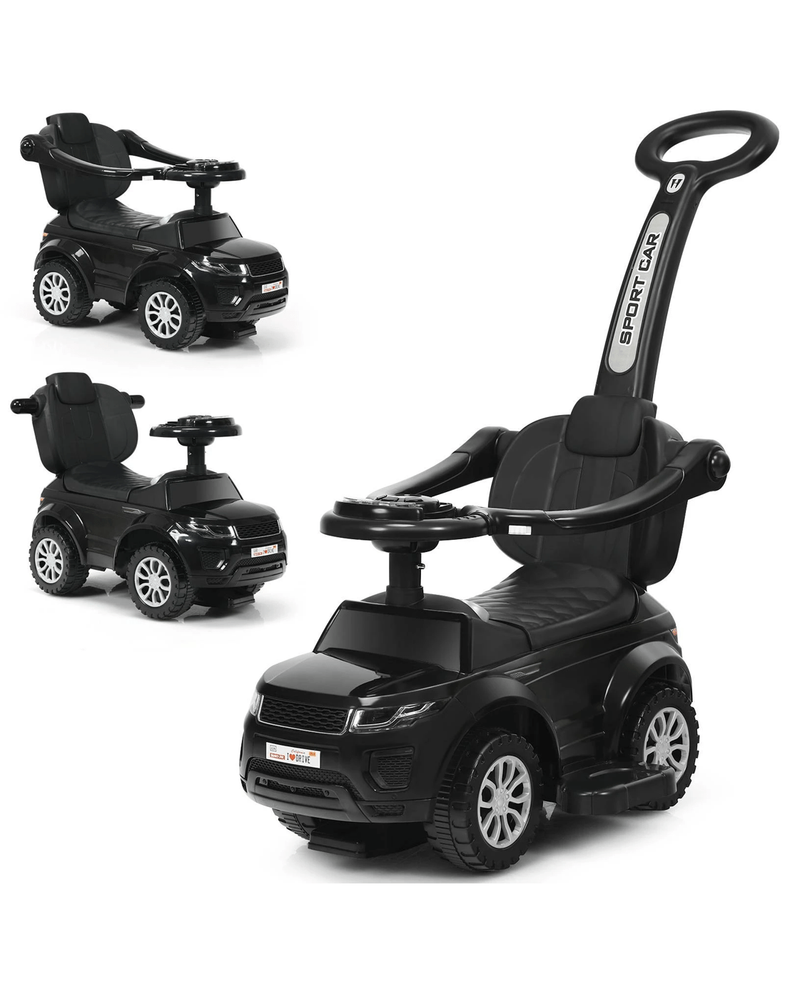 Our 3-in-1 ride-on push car can serve as a stroller, a walking car, and a riding on car, which can meet little ones of different growth stages. It is really an attractive gift to your little ones to enjoy great fun and also a practical helper for parents! With the removable handle with a wide grip, parents can push little ones from behind to act as a little one car while they take walks. Little ones can control the car to slide by themselves for a real driving experience. Entertainment Functions with a steering wheel, a music button, a horn button, and light effect bring endless fun while riding. 4 wear-resistant and non-slip wheels offer smooth and safe riding on various road surfaces. A perfect gift for your little one, providing more fun for your little one's growth!