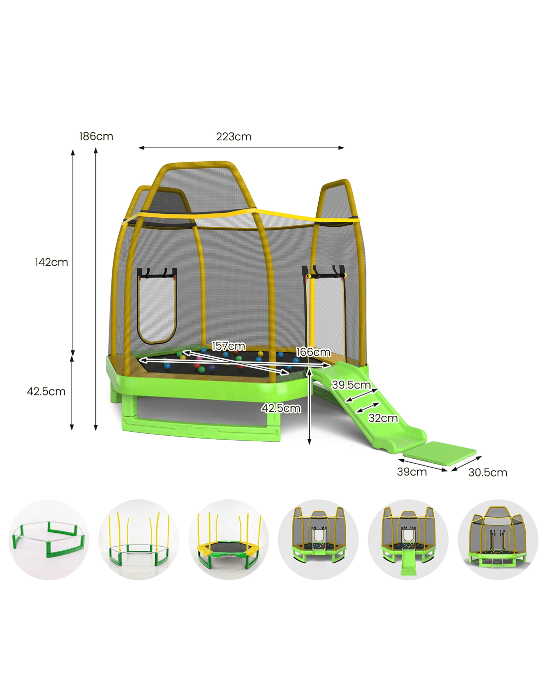 Costway Kids Round Trampoline Bouncer Jumping Rebounder w/20 Ocean Balls