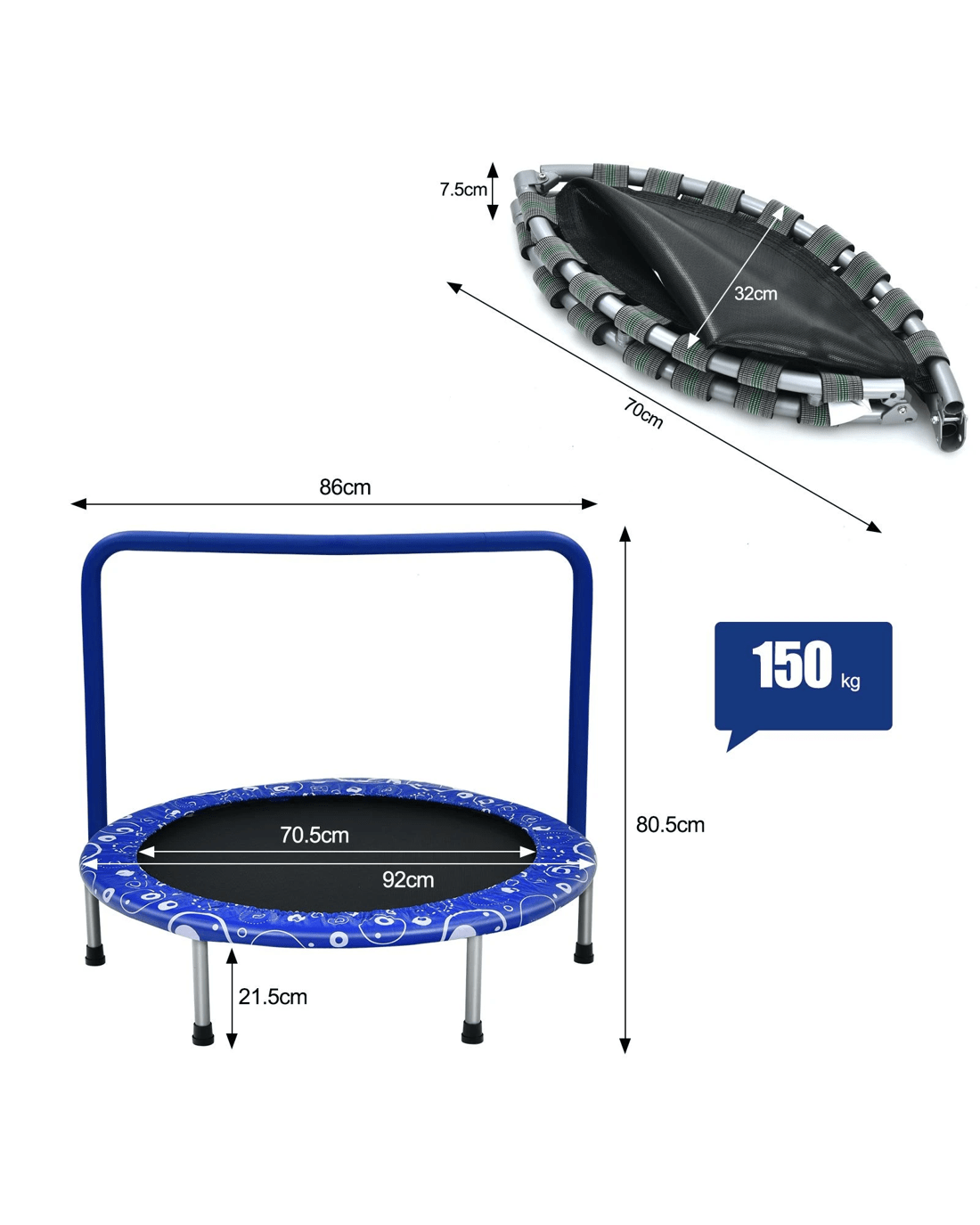 Costway Kids Trampoline Fitness Rebounder Handrail Security 90cm