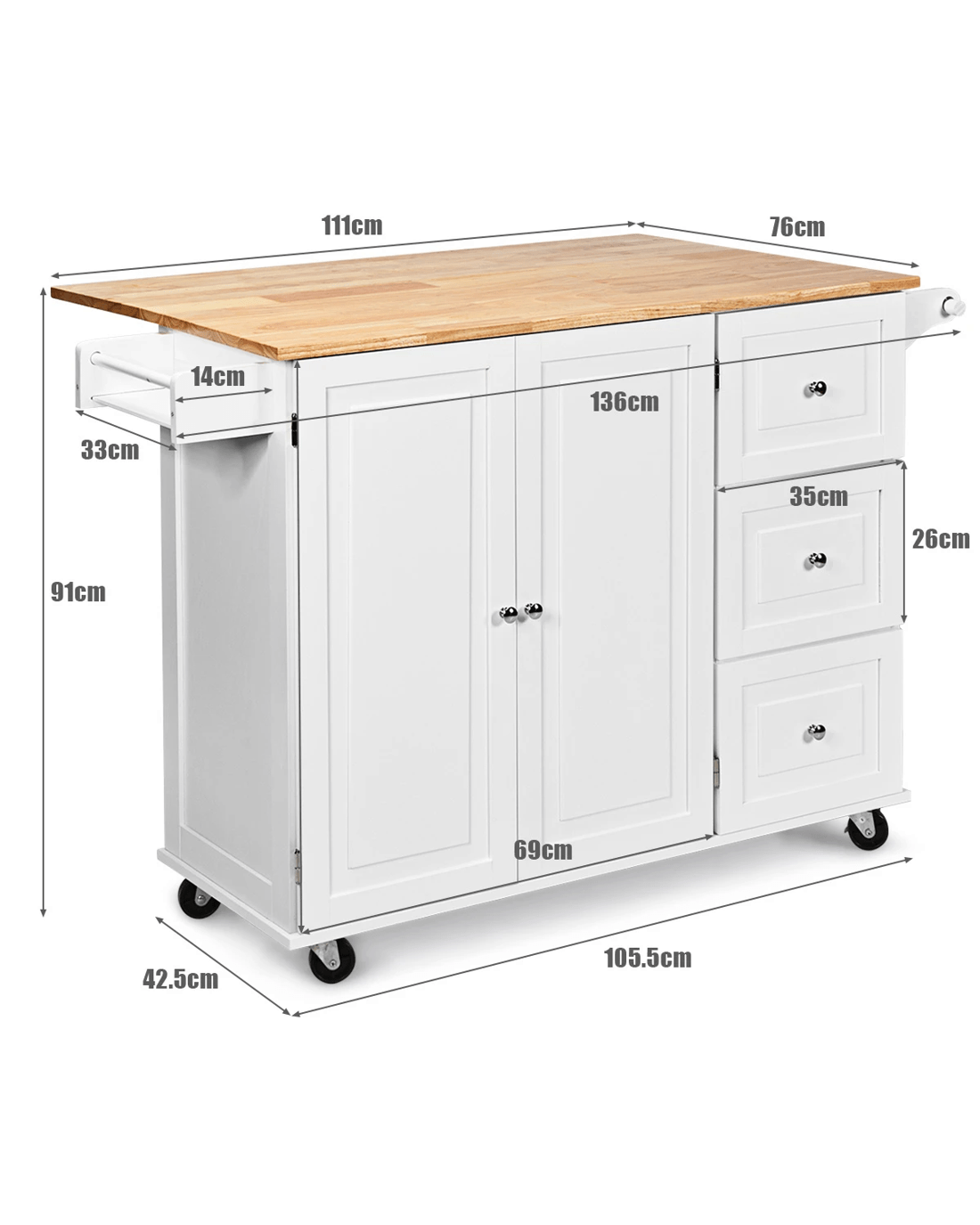 Countertop Size (with drop leaf down): 111x42.5cm(LXW)
