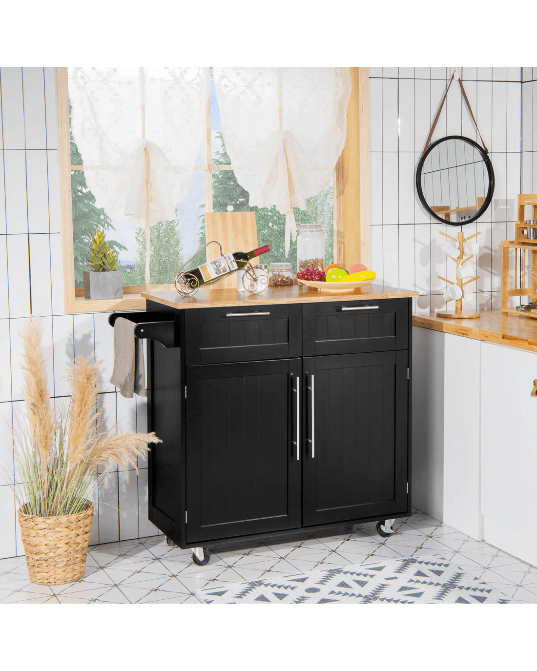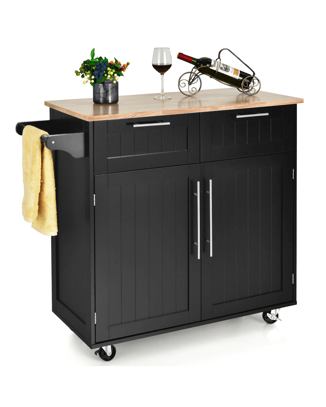 Sold by CostwayCostway Kitchen Island Trolley Rubber Wood Top Black