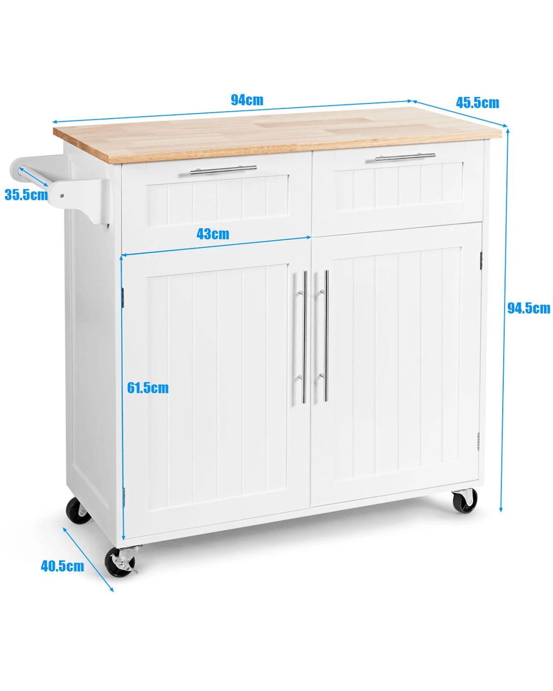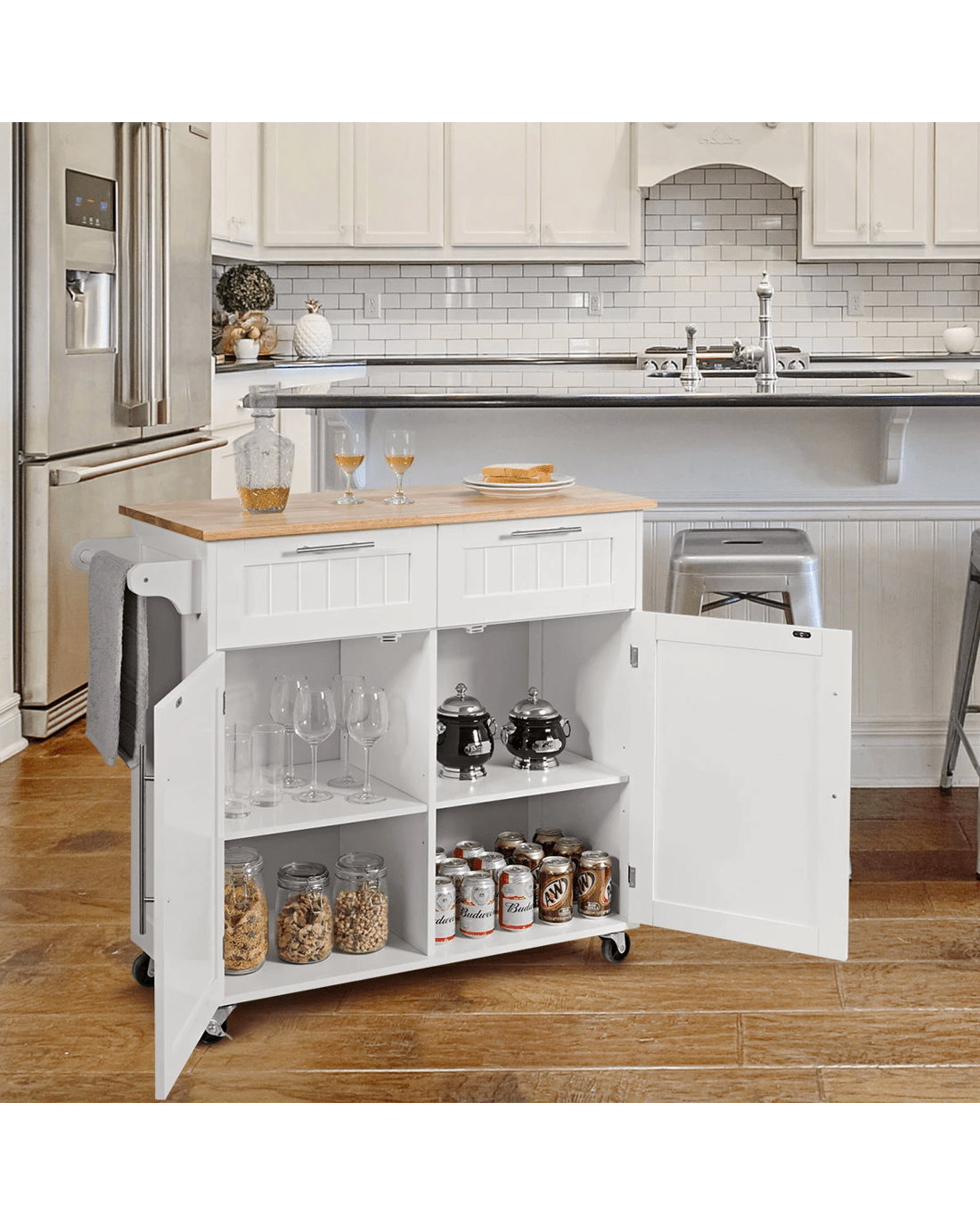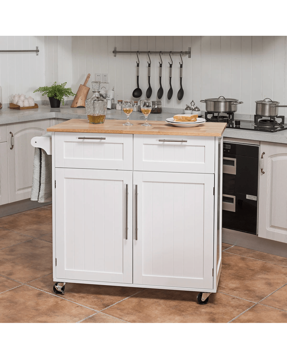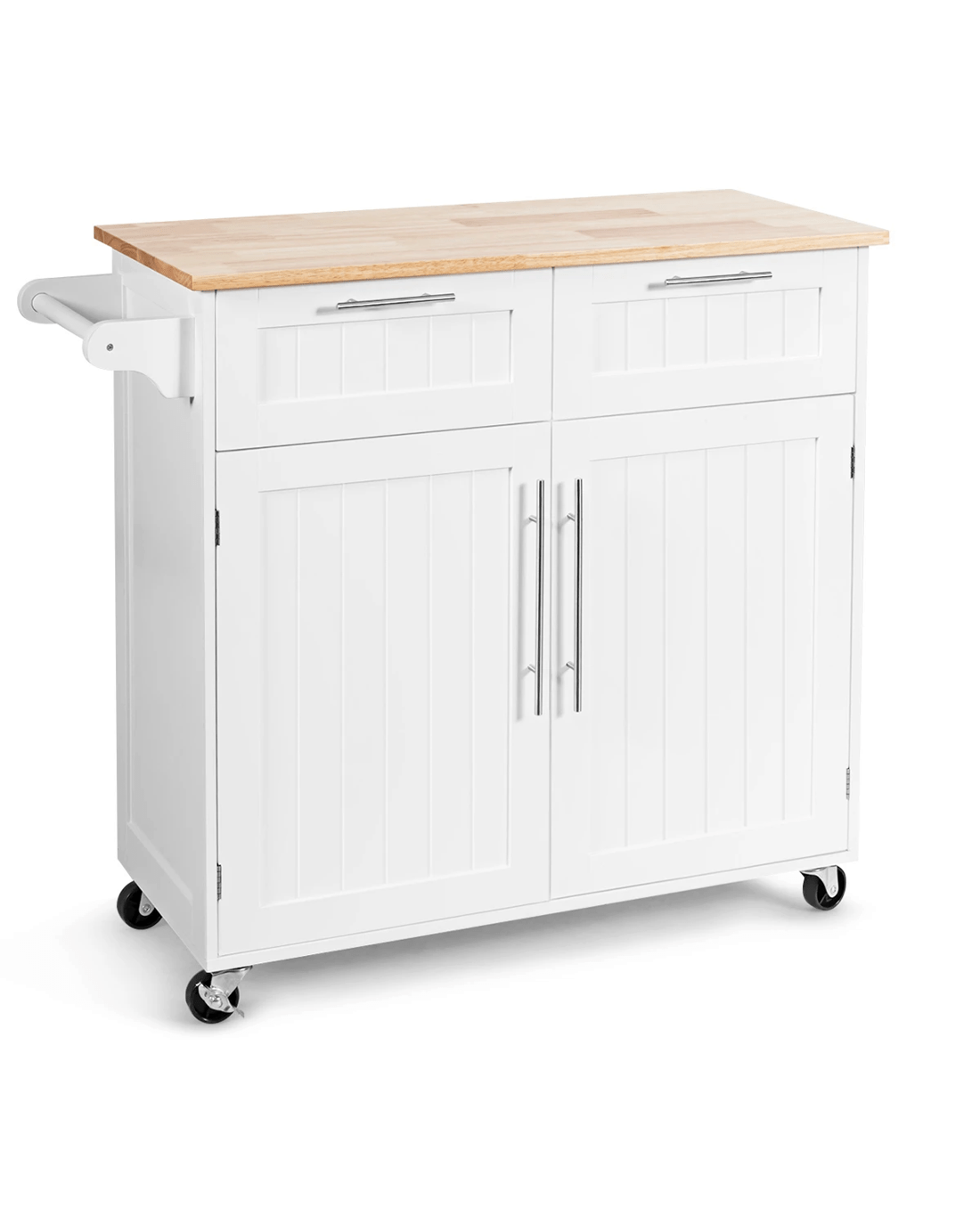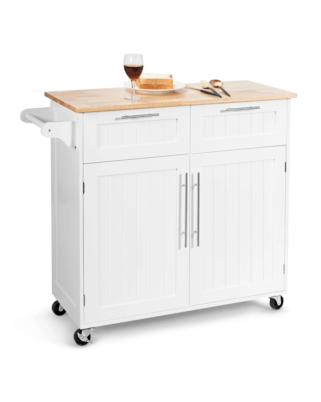 Costway Kitchen Island Trolley Rubber Wood Top White