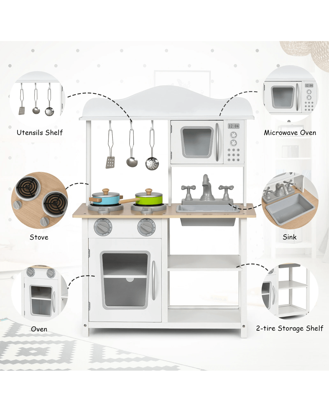 Costway Kitchen Play Set Kids Wood Cooking Toy