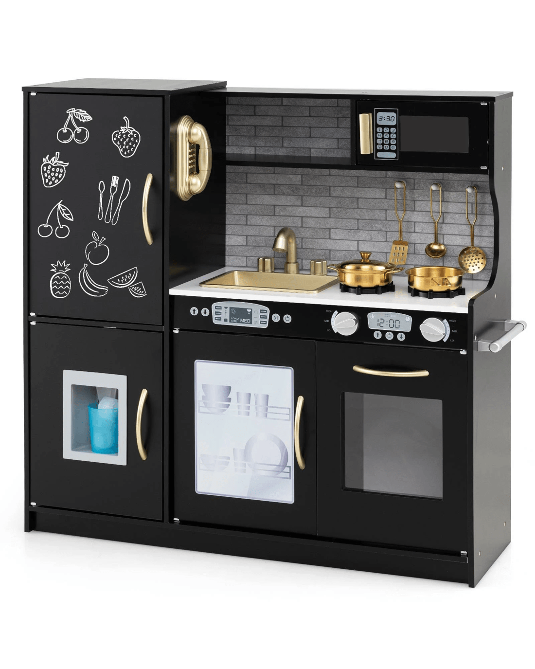 Costway Kitchen Playset Pretend Cooking Toy w/Cookware - Black