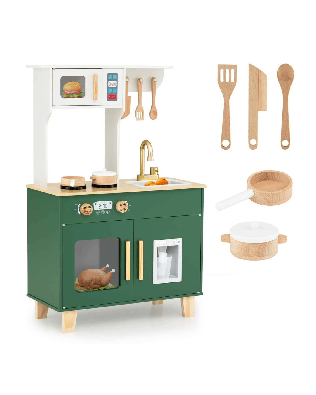 Sold by CostwayCostway Kitchen Playset Wooden Chef Pretend Play Kitchen Toy w/Microwave - Green