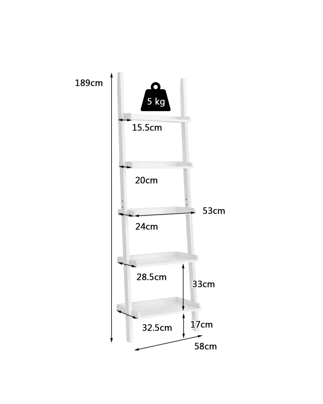 If you’re looking for a bookshelf that requires storage and can be moved anywhere easily, you should try out our 5-tier ladder shelf. Made of solid density board, this shelf is sturdy and durable enough for long-lasting use. 5-tier open shelves can well suit your daily needs for storing and displaying books, photos, ornaments, etc. Featuring unique and space-saving wall-leaning design, the ladder shelf can not only make full use of vertical space but also keep your room clean and tidy. Besides, simple and modern style makes this bookshelf suitable for living room, bathroom, and study. It can be used not only as a bookcase, but also as a display rack and storage shelf.