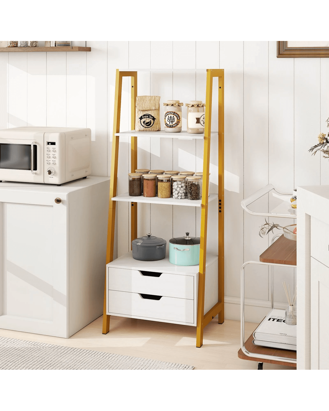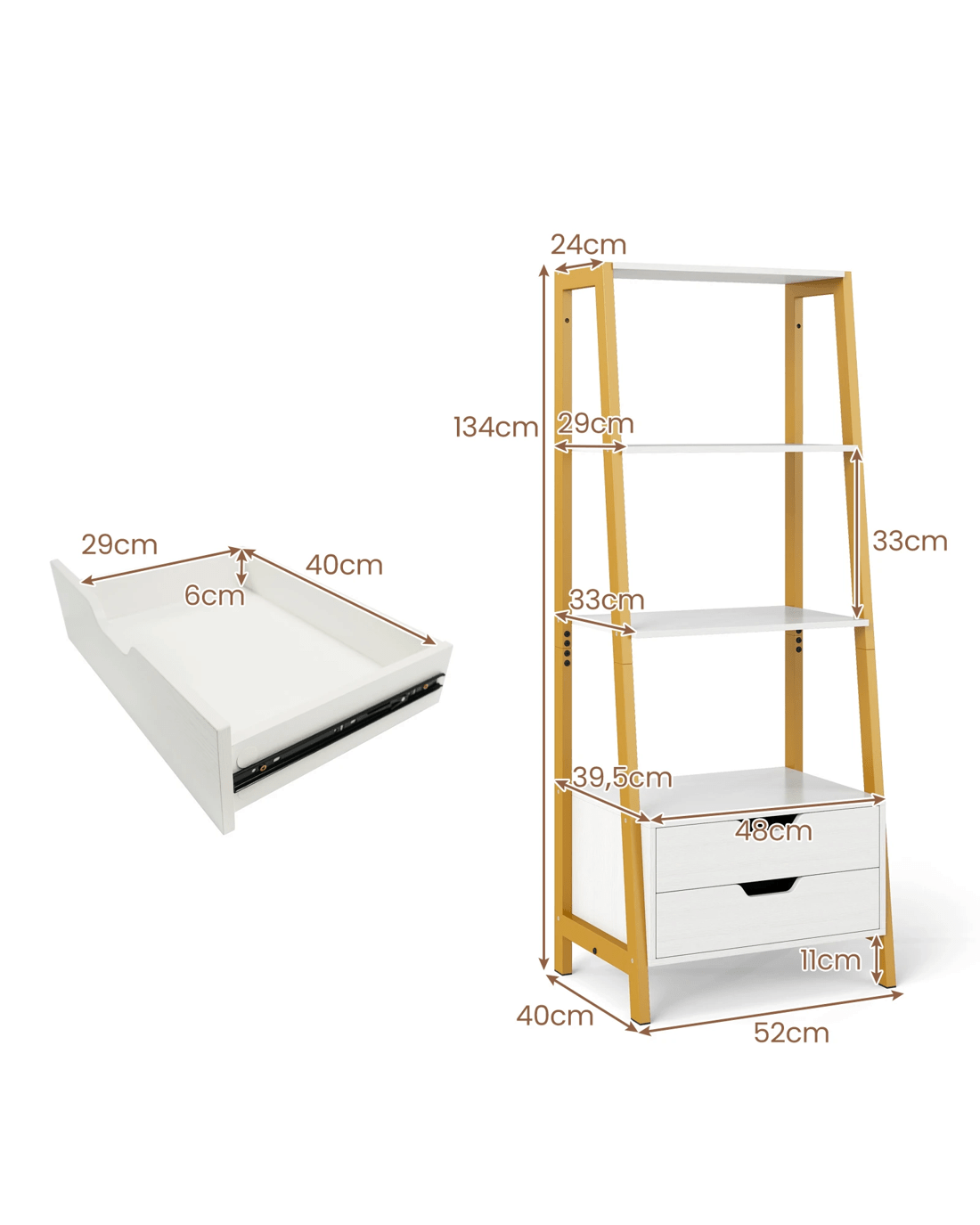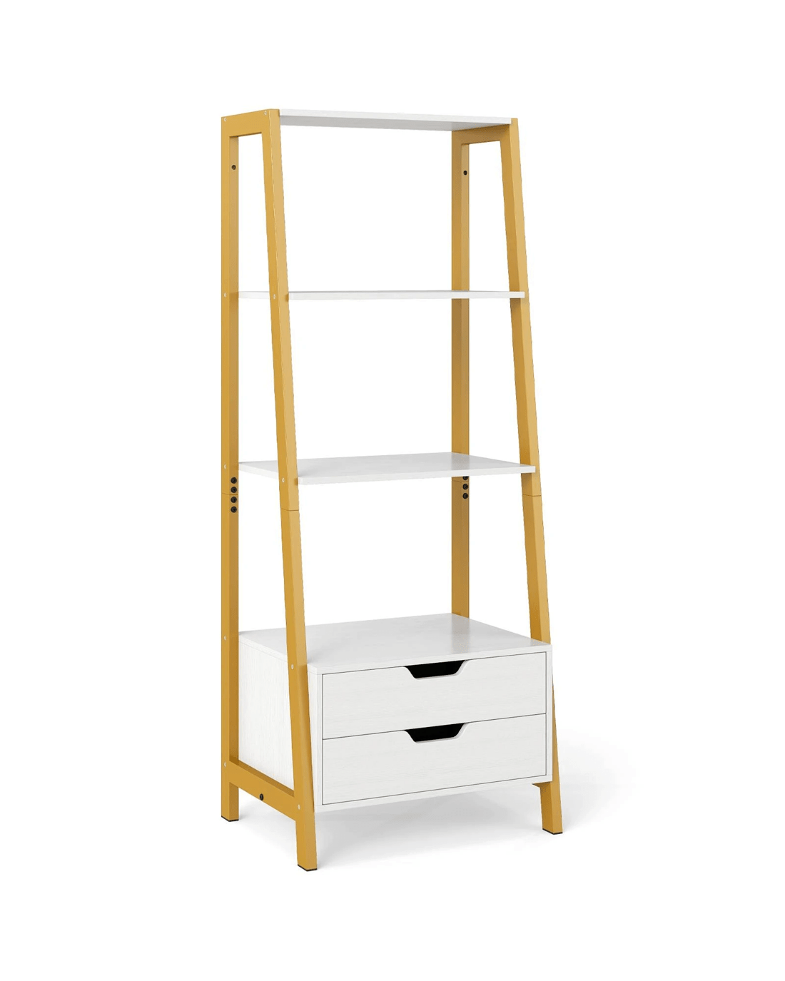 Costway Ladder Bookshelf w/Storage Shelf & Drawer Tall Display Rack Bookcase - White