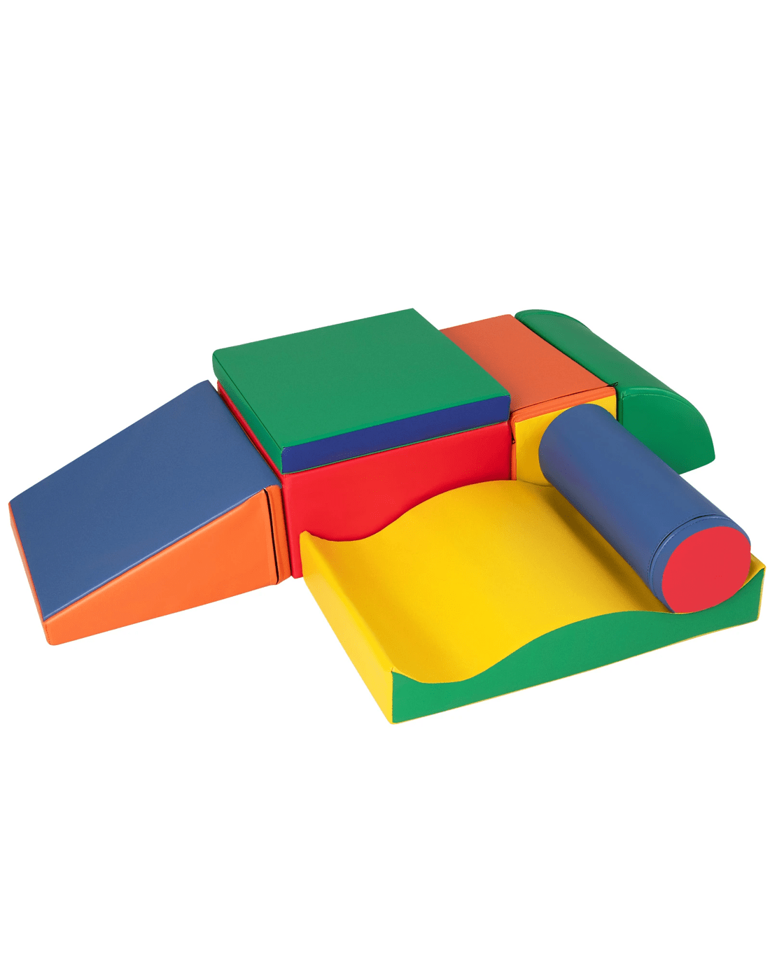 There are 3 cuboids, a quarter cylinder, a wavy block, a slope and a cylinder, allowing for free combinations to stimulate little ones' potentials. Removable covers are made of PU leather which is resist to water and wear. So parents can easily clean stains for easy maintenance. More, the climbing foam set features tight stitches, very suitable for reuses over years. Inner EPE is a great safeguard for soft touch and reliable support. Little ones can safely toddling or tumbling without any hurts. Finally, the foam block set is educational for little ones. Their social skills, motor skills, creativity and color recognition will be highly improved.