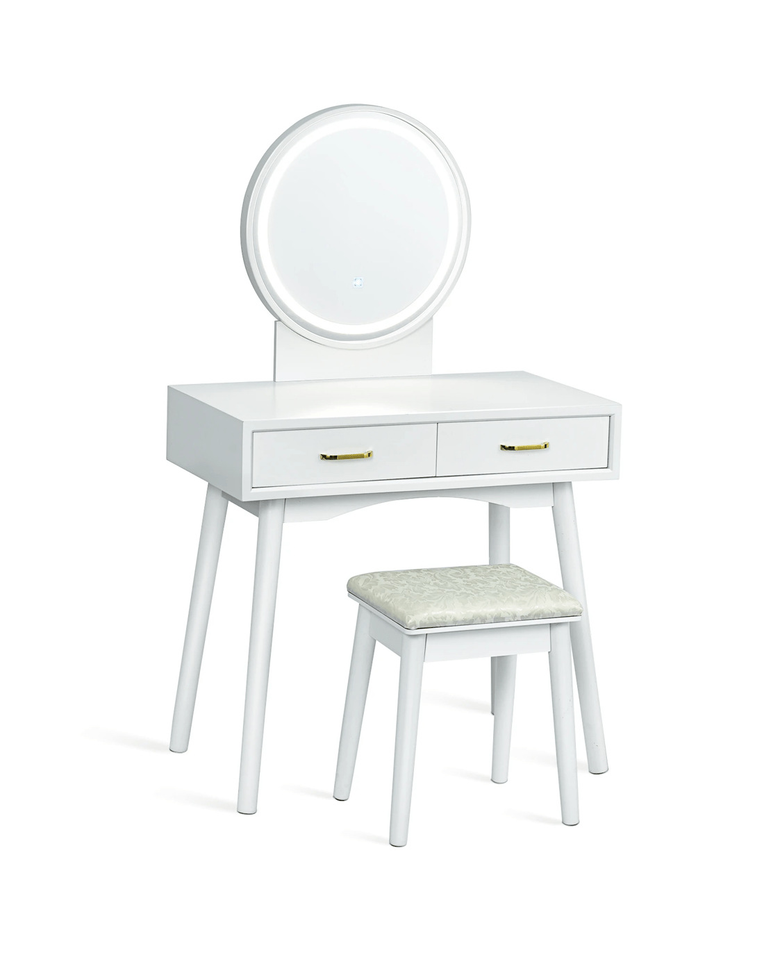 Costway Makeup Dressing Table Set w/3 Color Lighted Mirror Rubber Wood Vanity Table Set