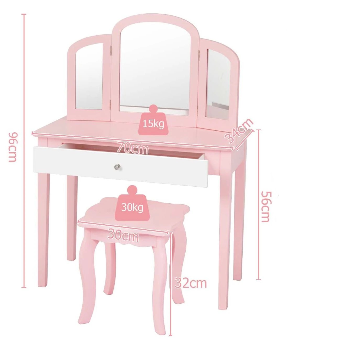 Costway Makeup Dressing Table Stool Set Folding Mirror Pink