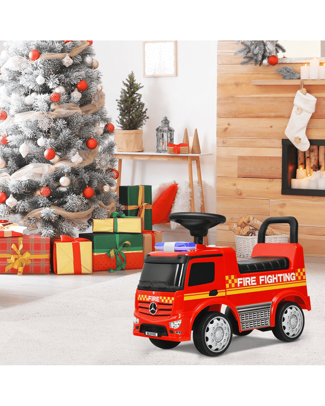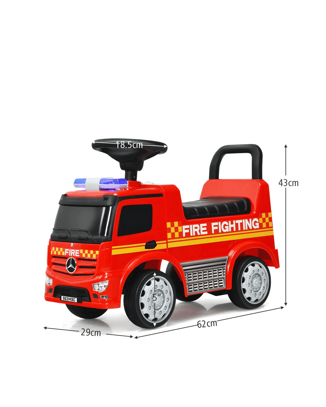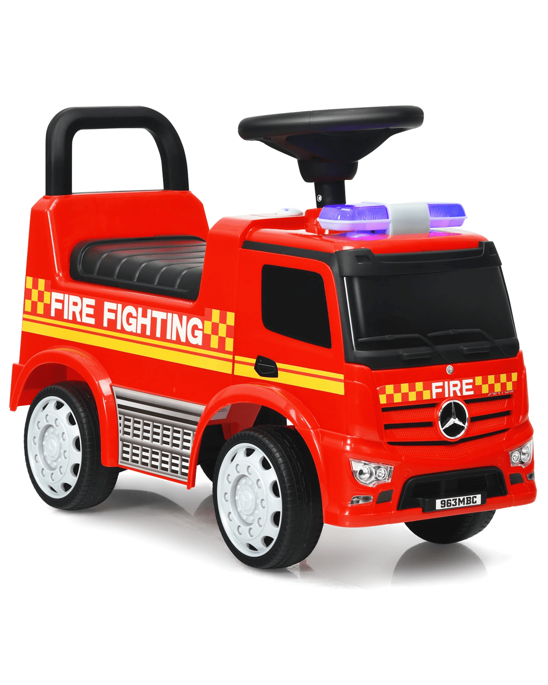 Fire engine appearance to provide little ones with an authentic driving experience