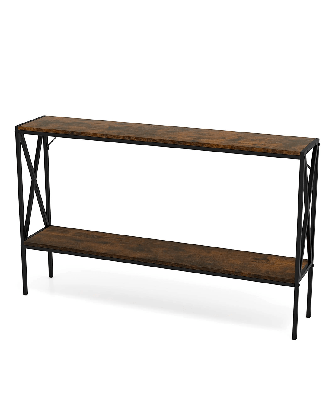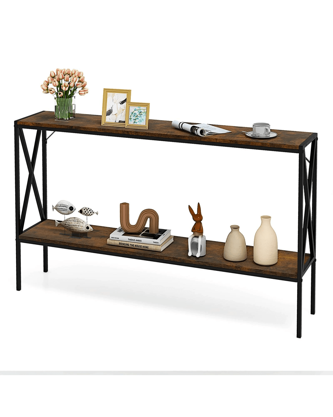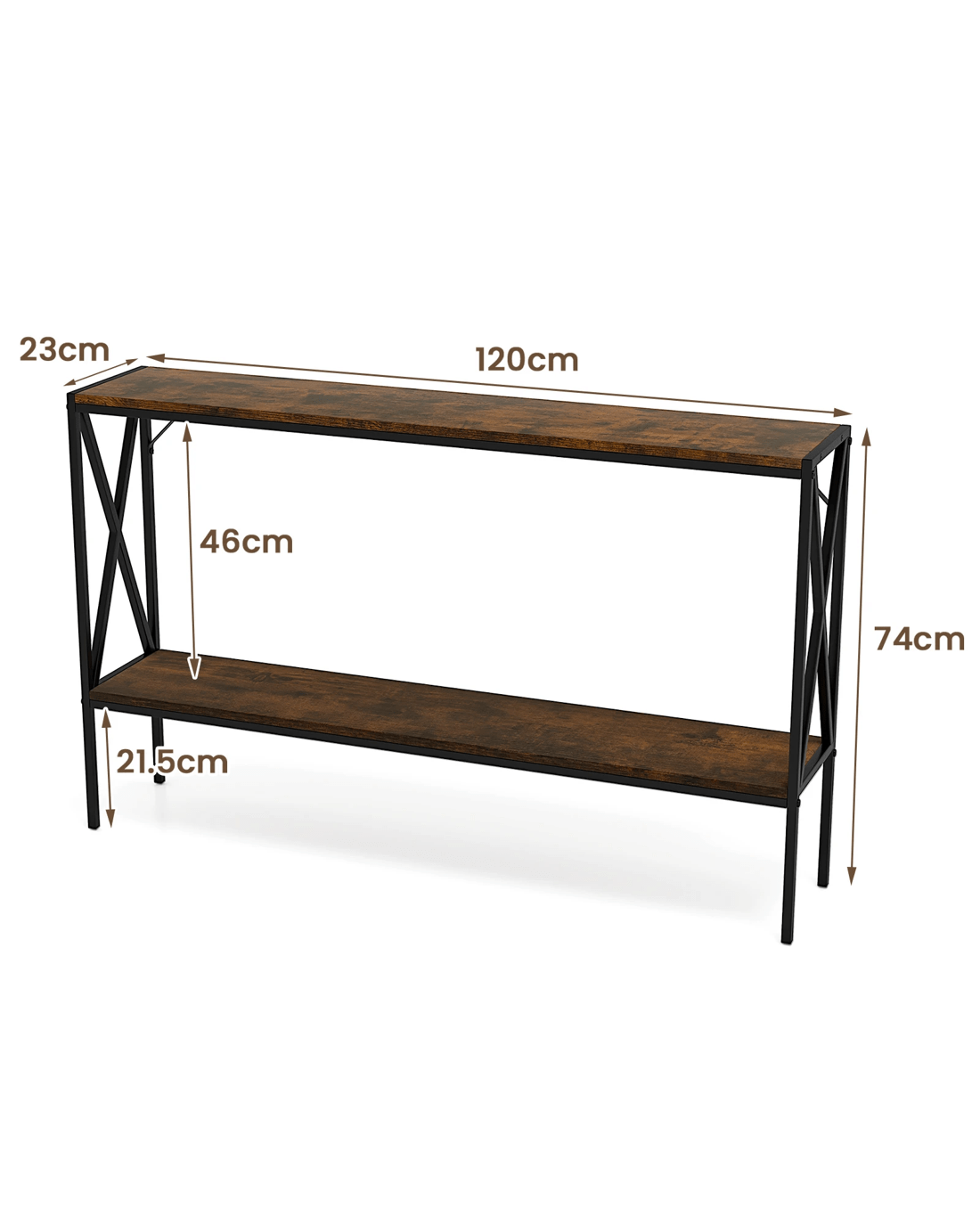 Measuring 120 x 23 x 74 cm (L x W x H), the entryway table is designed to fit seamlessly into narrow spaces. The 2-tier foyer table easily accommodates decorations, vases, scented candles, and even storage basket, reducing clutter while enhancing the aesthetic of your entryways, living rooms, or hallways. Boasting a heavy-duty metal frame and premium boards supported by an X-shaped structure, the hall table provides a reliable platform for your valuables. Additionally, 2 anti-toppling kits further enhance its overall stability. Ideal for stylish organization, our narrow sofa table can be a showstopper in your living space.