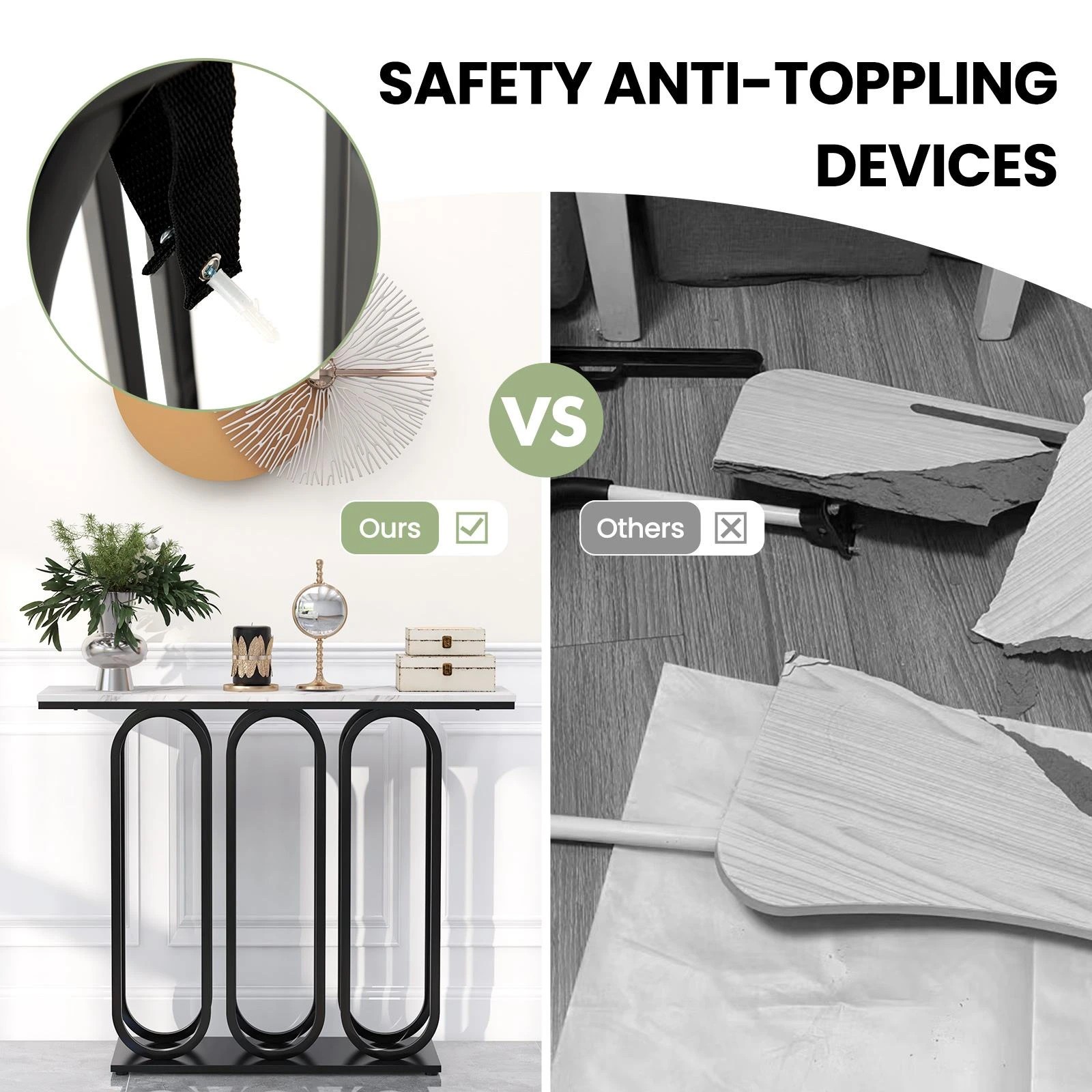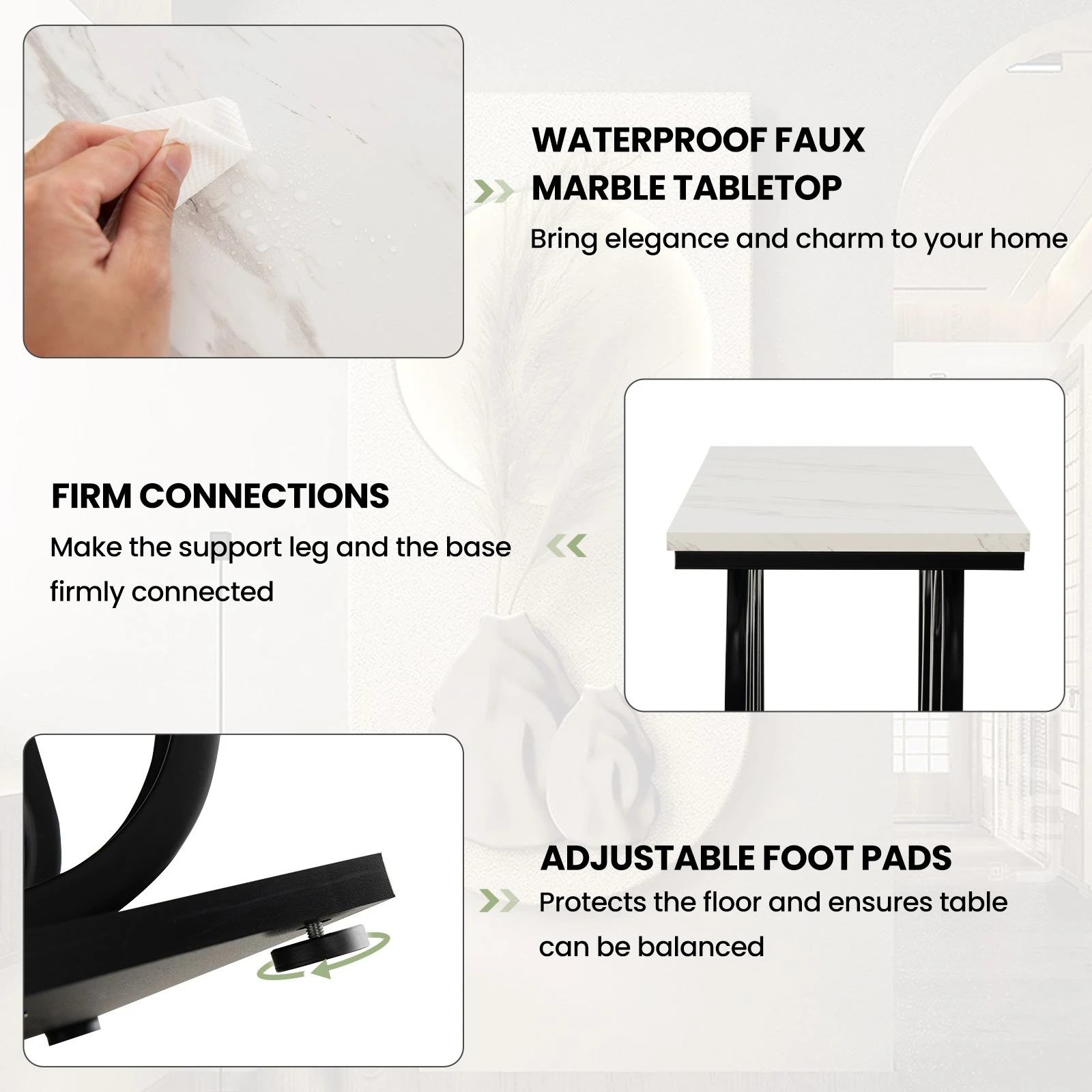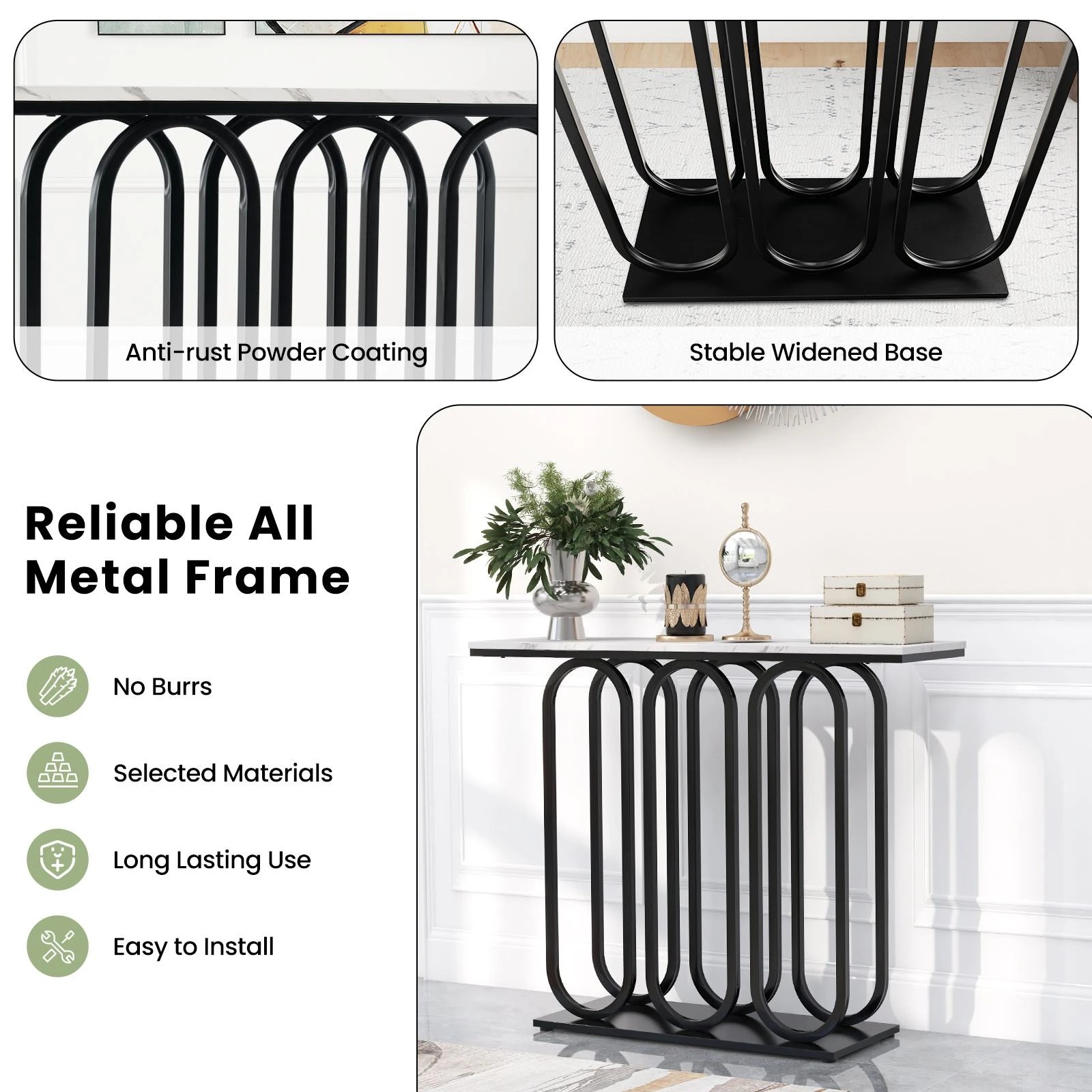 Costway Metal Frame Console Table Faux Marble Tabletop