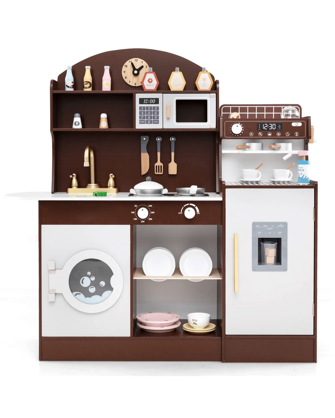 Costway Mini Pretend Wooden Kitchen Playset w/Dish Rack - Brown