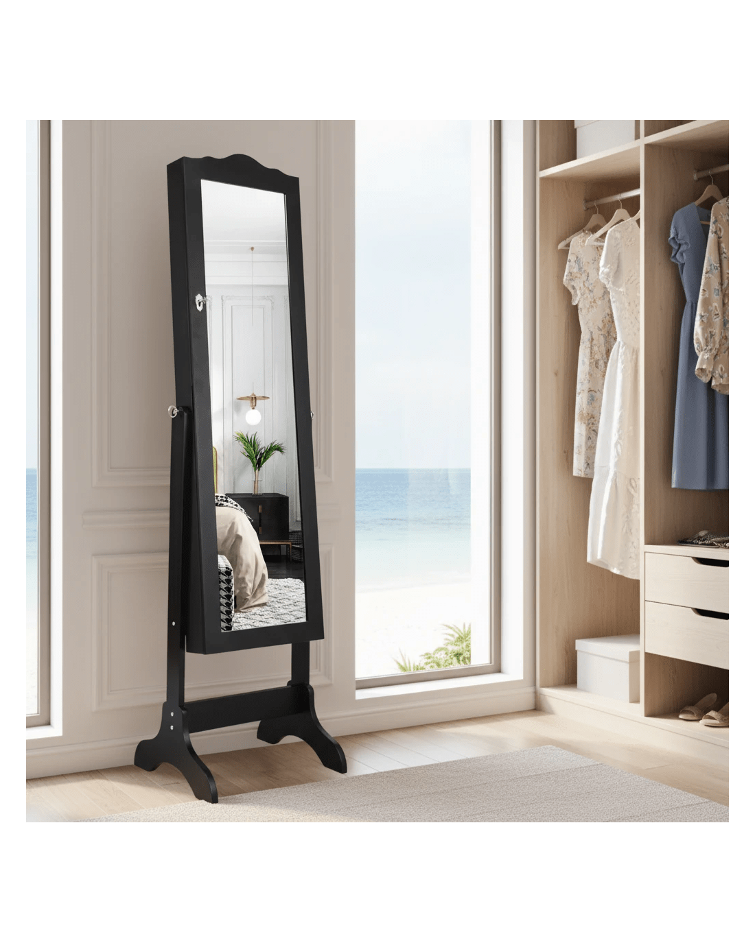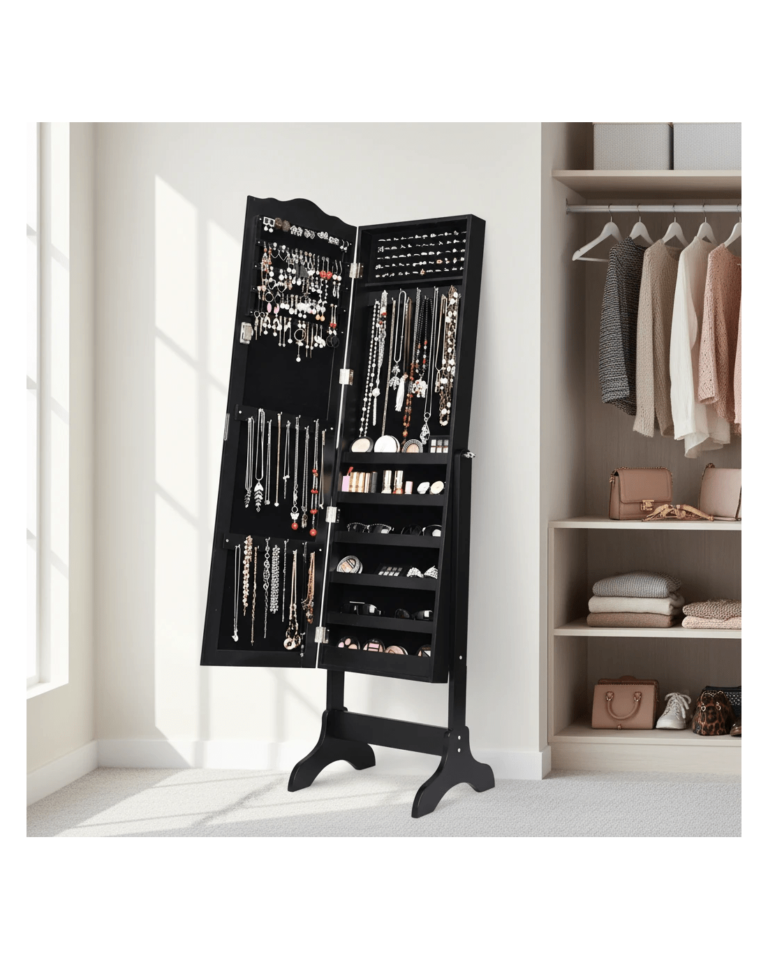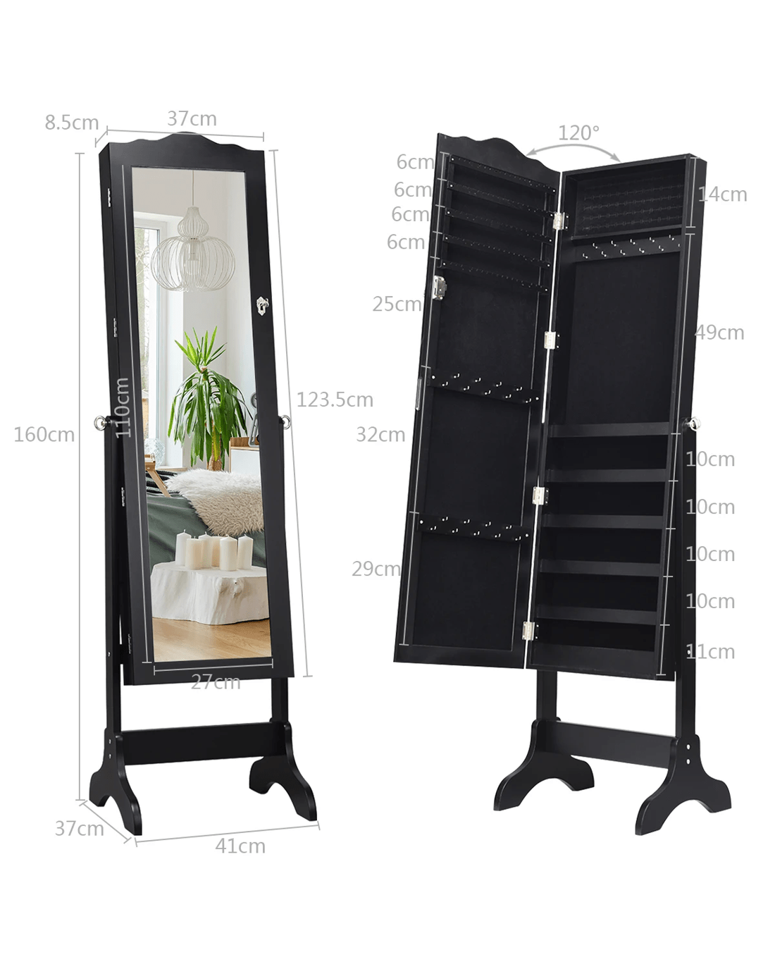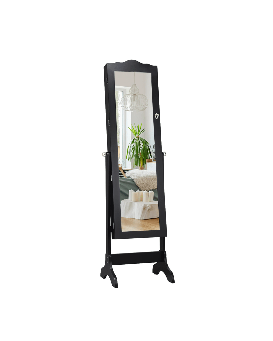 Costway Mirror Jewellery Cabinet Wooden Jewelry Organiser Box Makeup Cosmetics Storage - Black