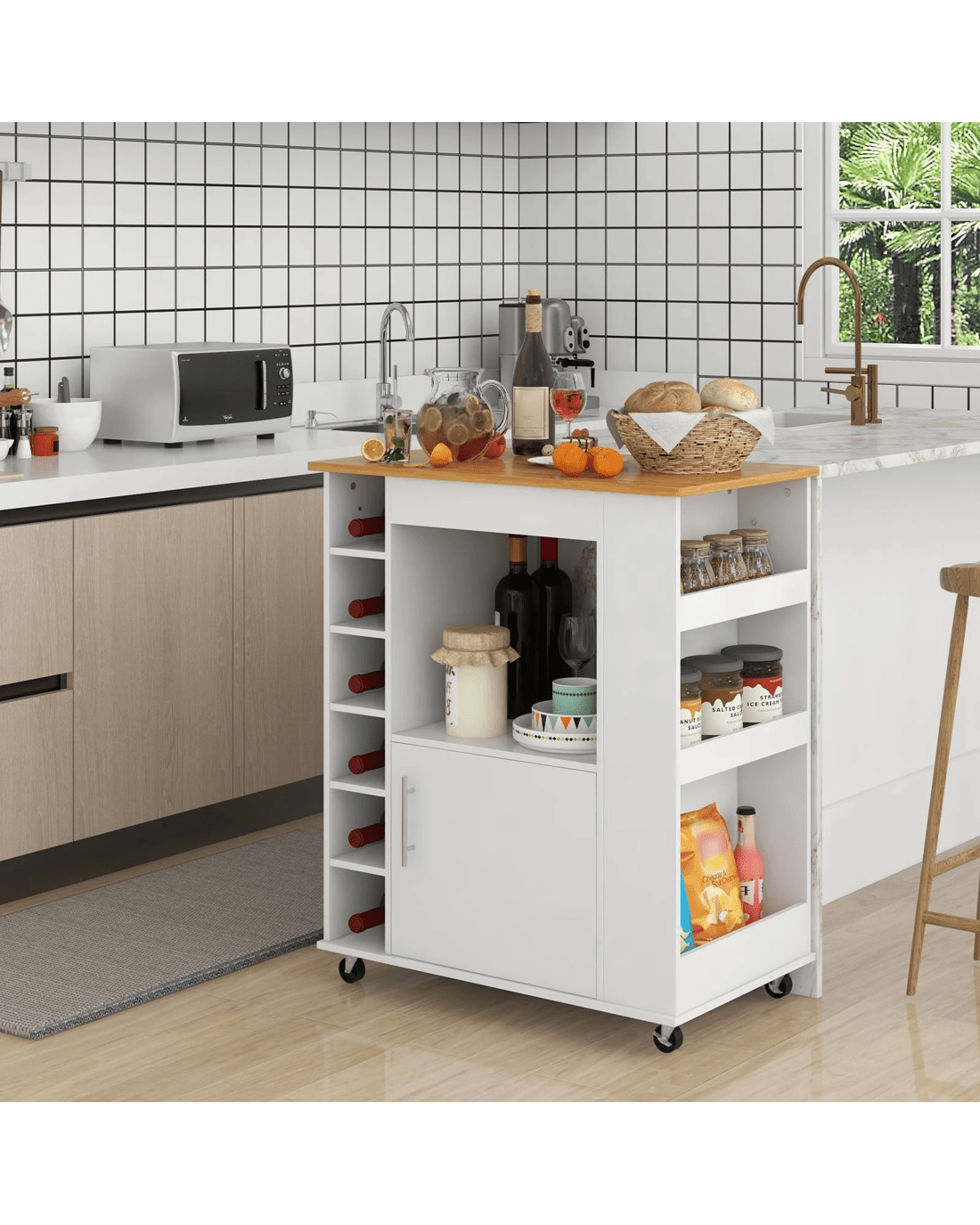 Costway Mobile Kitchen Island w/Wine Rack