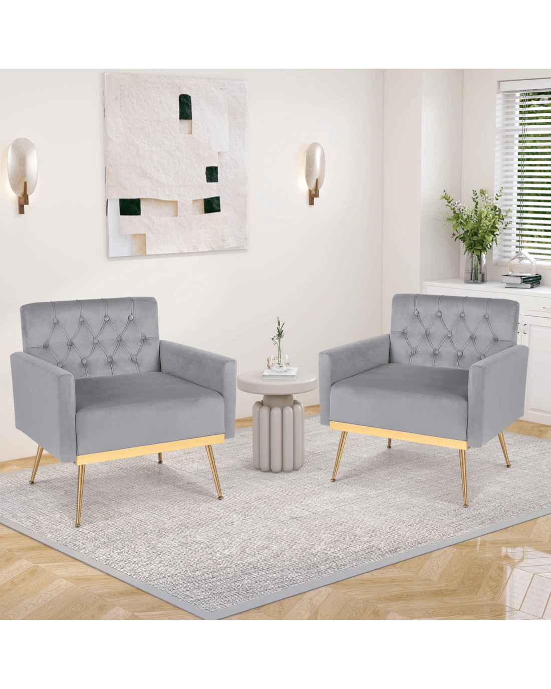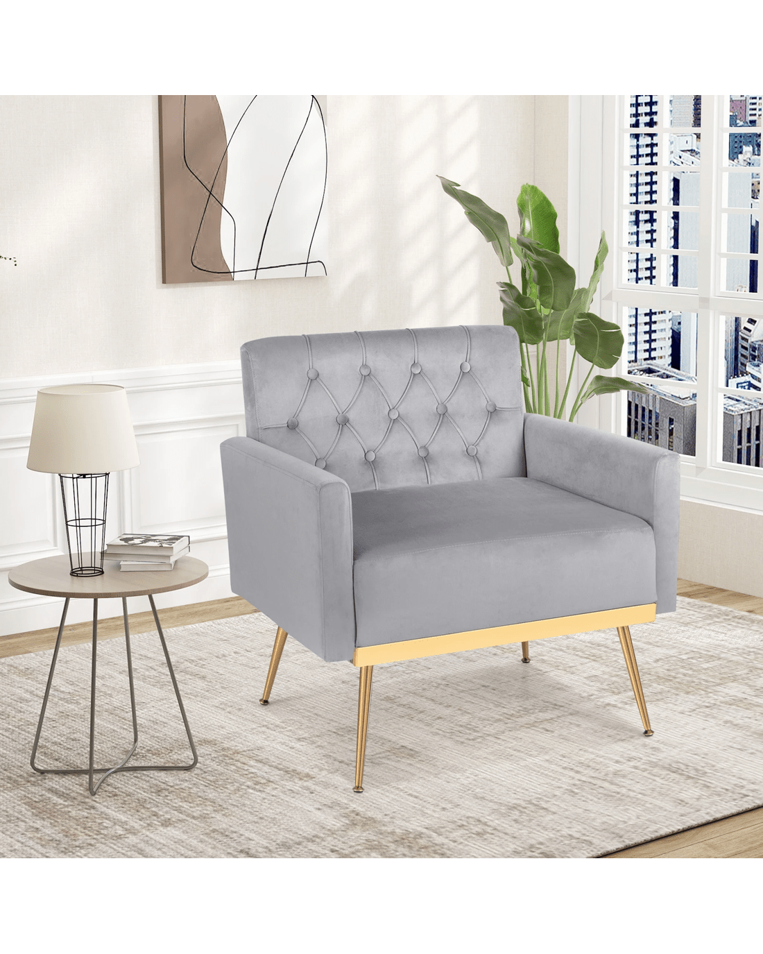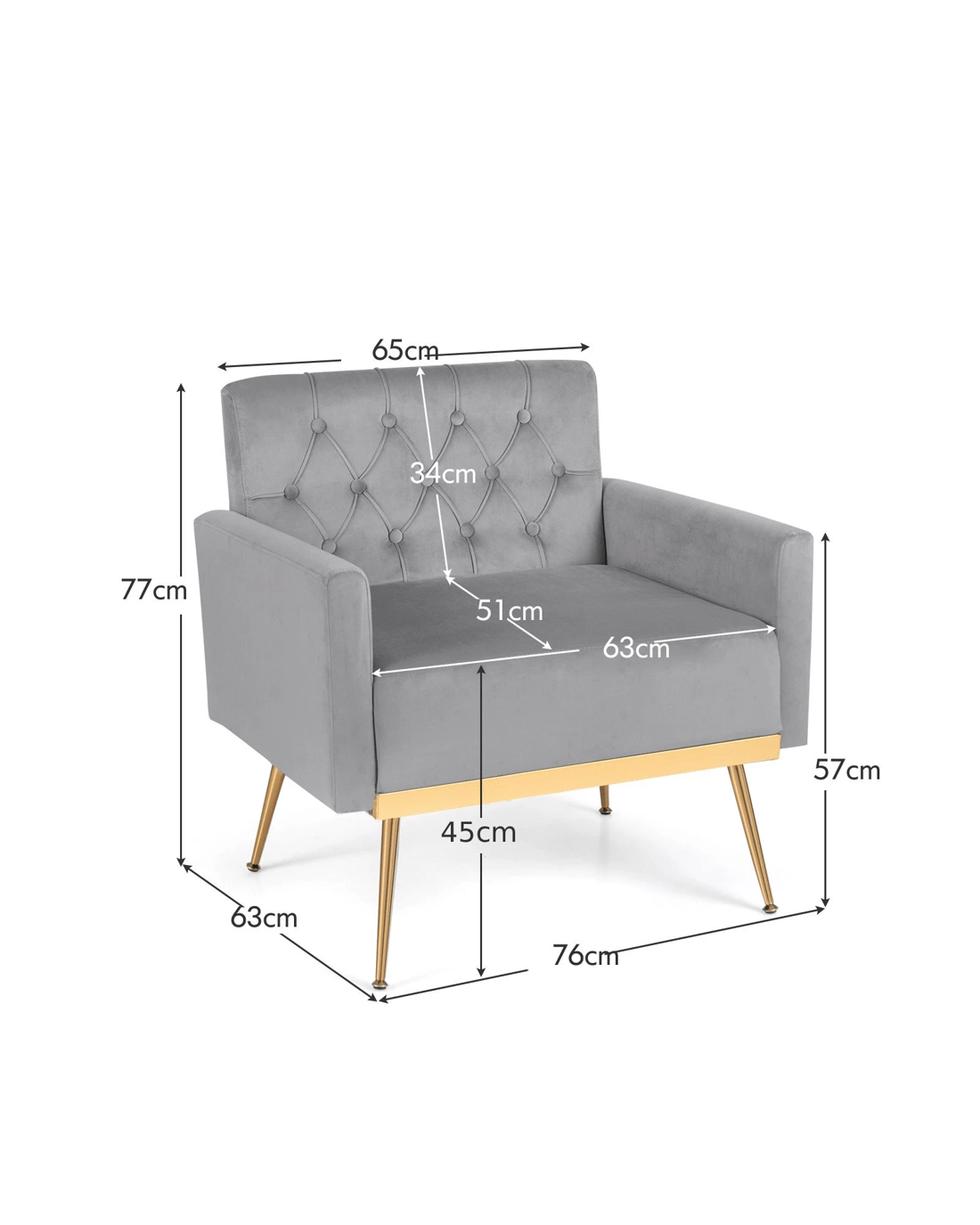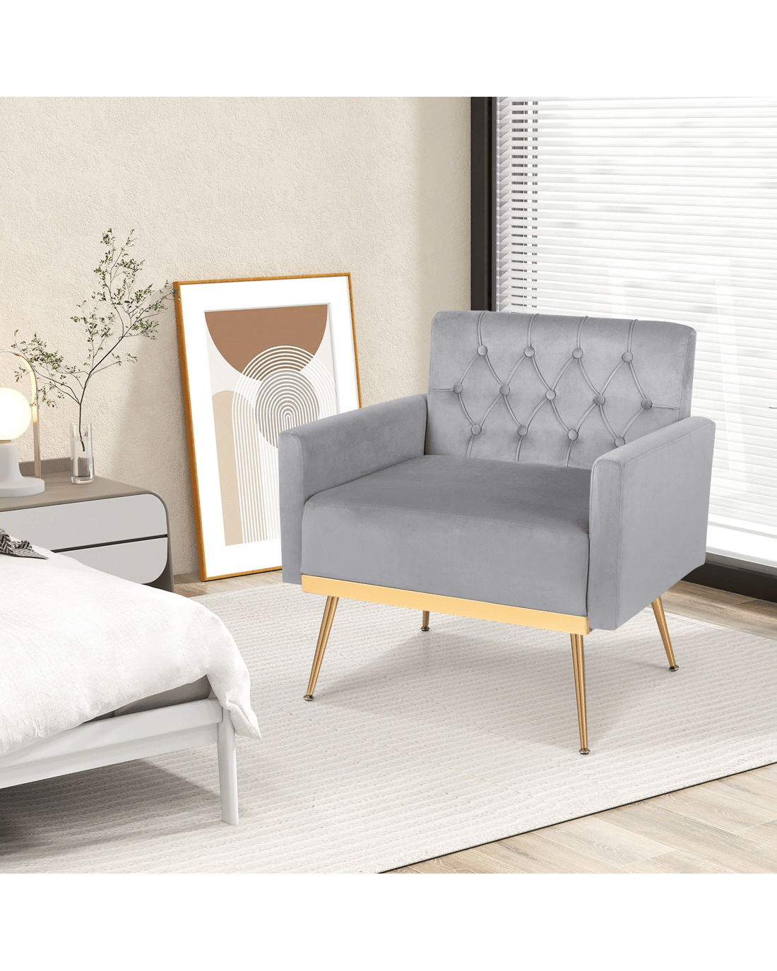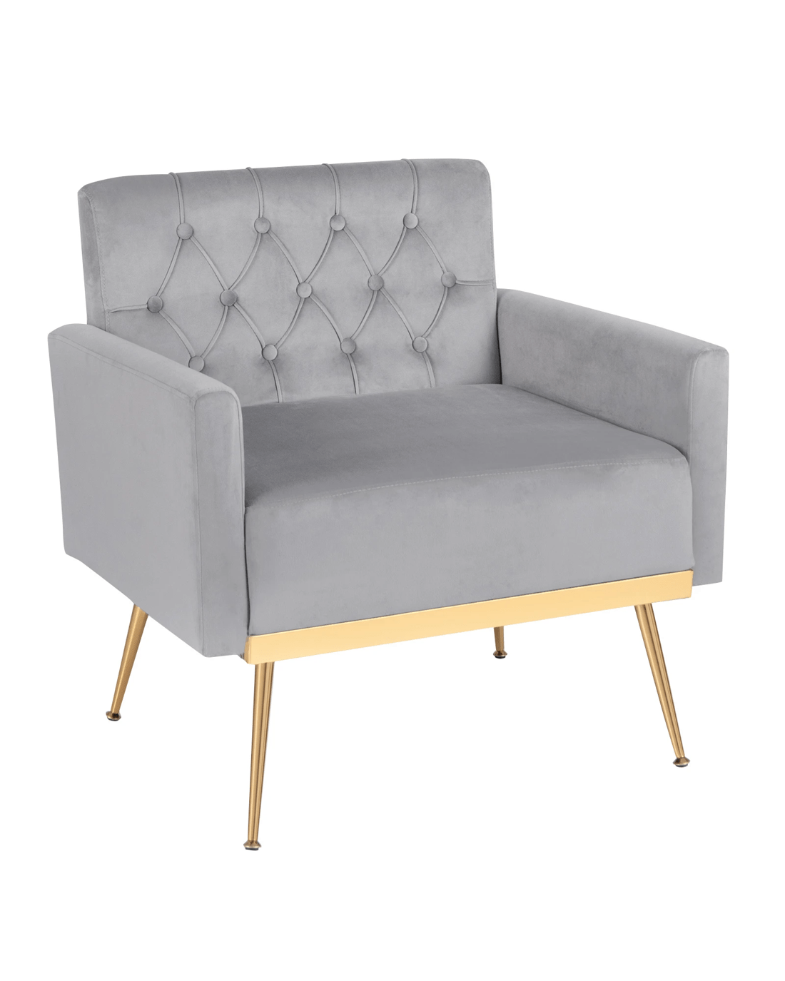 Costway Modern Accent Armchair Velvet Sofa Chair w/Button Tufted Back & Golden Metal Legs - Grey
