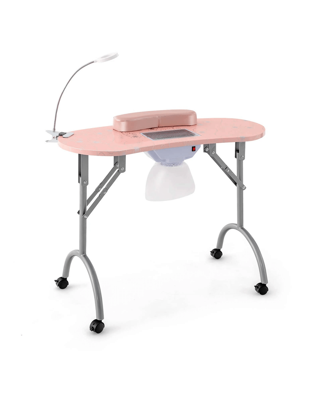 Costway Modern Manicure Nail Desk Folding Nail Care Table w/Dust Collectorm LED Lamp - Pink