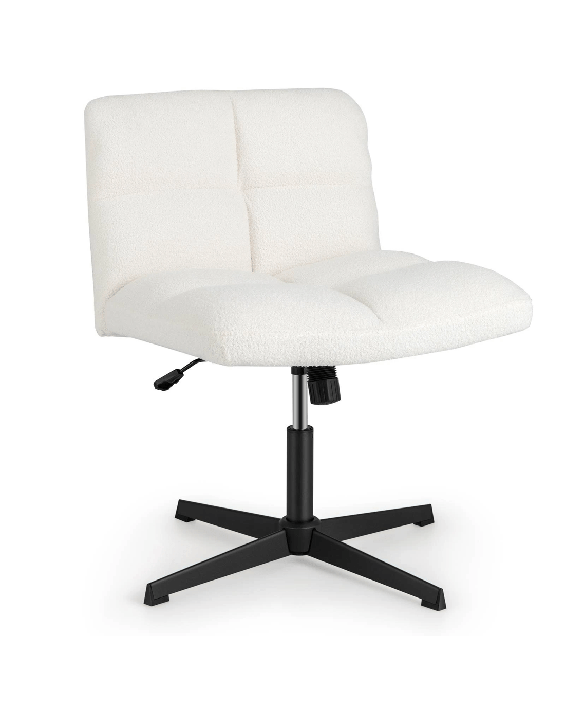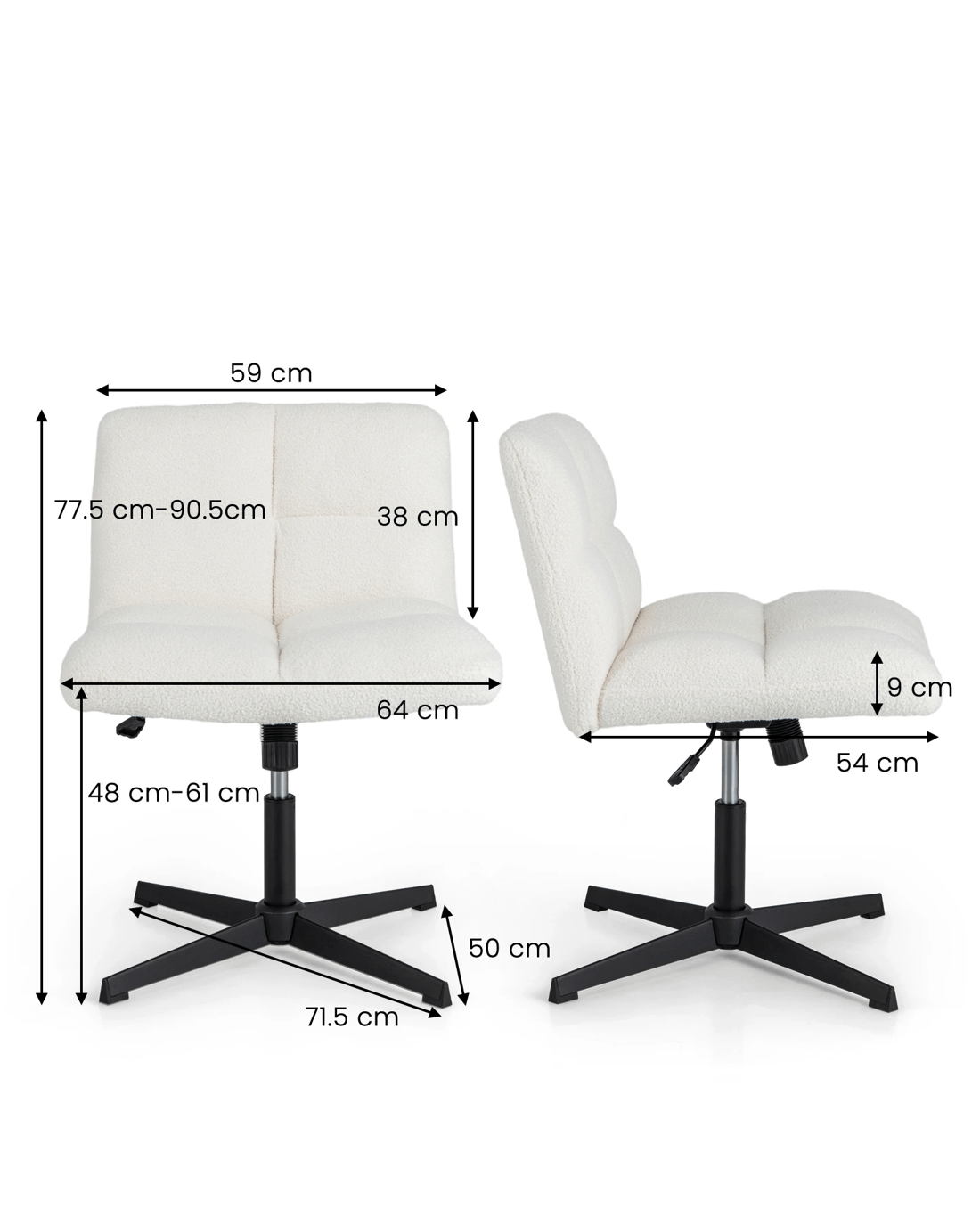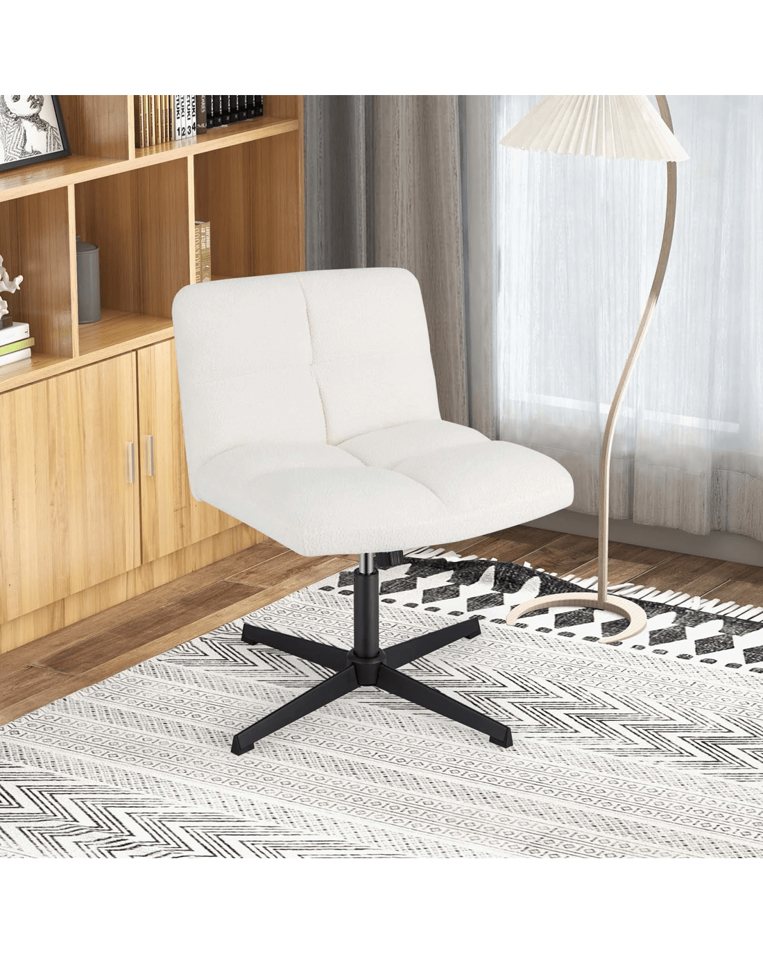 This padded chair features imitation lamb flannelette cover, which gives you a high-grade appearance and a soft touch. In addition, the U-shaped cushion provides you with comfortable support, and the considerate backrest helps relieve spinal pressure. Supported by large 71.5cm(dia) metal base, the swivel vanity chair has strong load-bearing capacity of 350 lbs to ensure reliable use. You can adjust the adjustment lever up and down to find your ideal height position, and use it to lock or free the armless office chair. Plus, the tension adjustment knob brings loose and tightened setting, and enables you to enjoy 100° to 120°rocking motion. You can put the armless swivel chair at home or in the office to meet different needs.
