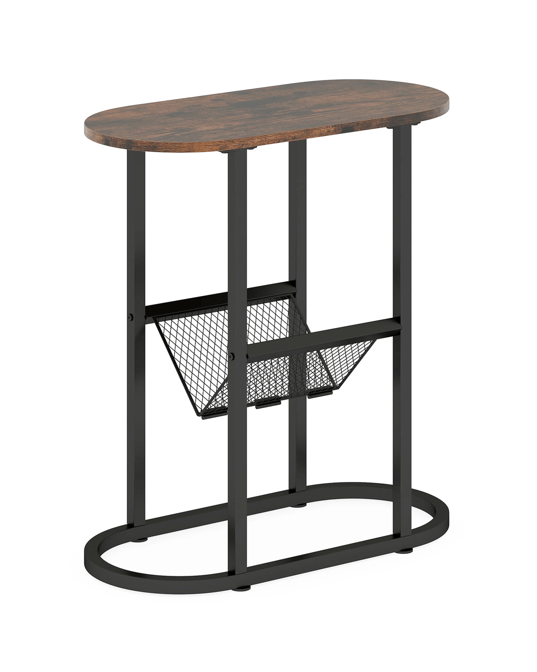 Discover the perfect space-efficient solution with our stylish, narrow side table. Perfect for tight spaces at 60 x 29 x 64 cm, it elegantly fits wherever you need it �C next to your cozy sofa or as a charming nightstand. Say goodbye to bumps and scrapes with its rounded oval design. This isn't just a table; it's a statement piece with its V-shaped magazine rack and robust metal frame, designed to support up to 60 kg and endure over time. The stylish finish injects a dose of sophisticated into any setting. Don't let a cramped space cramp your style �C elevate your home with this multi-functional, exquisite piece of furniture today!