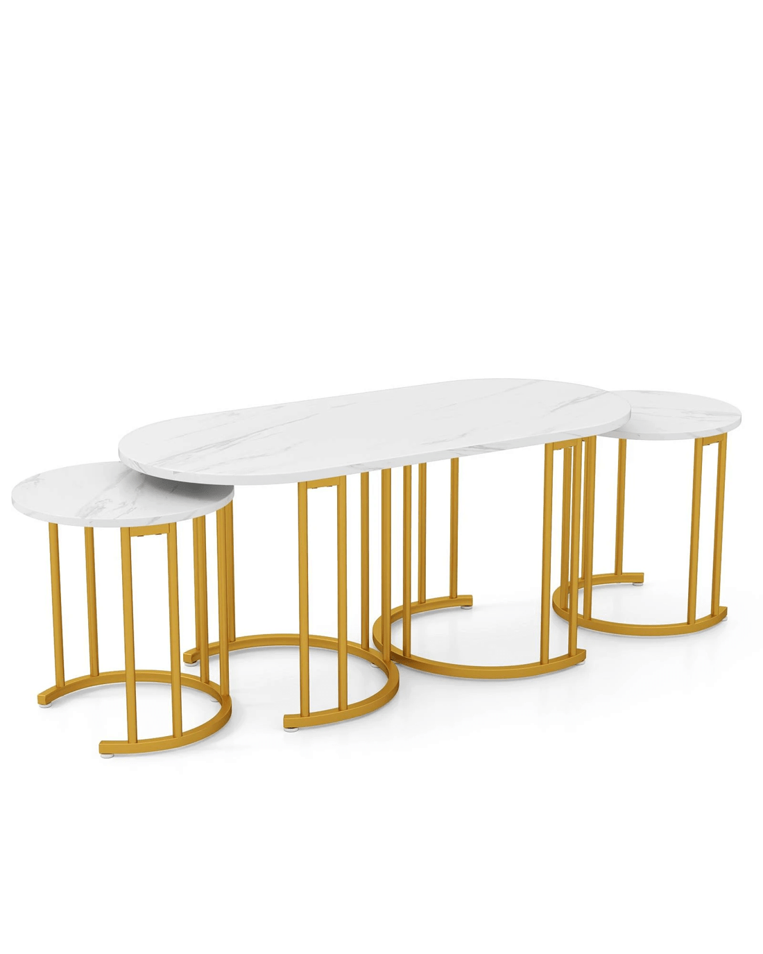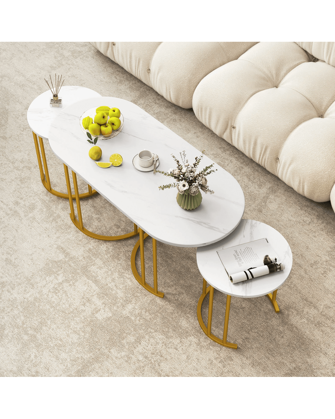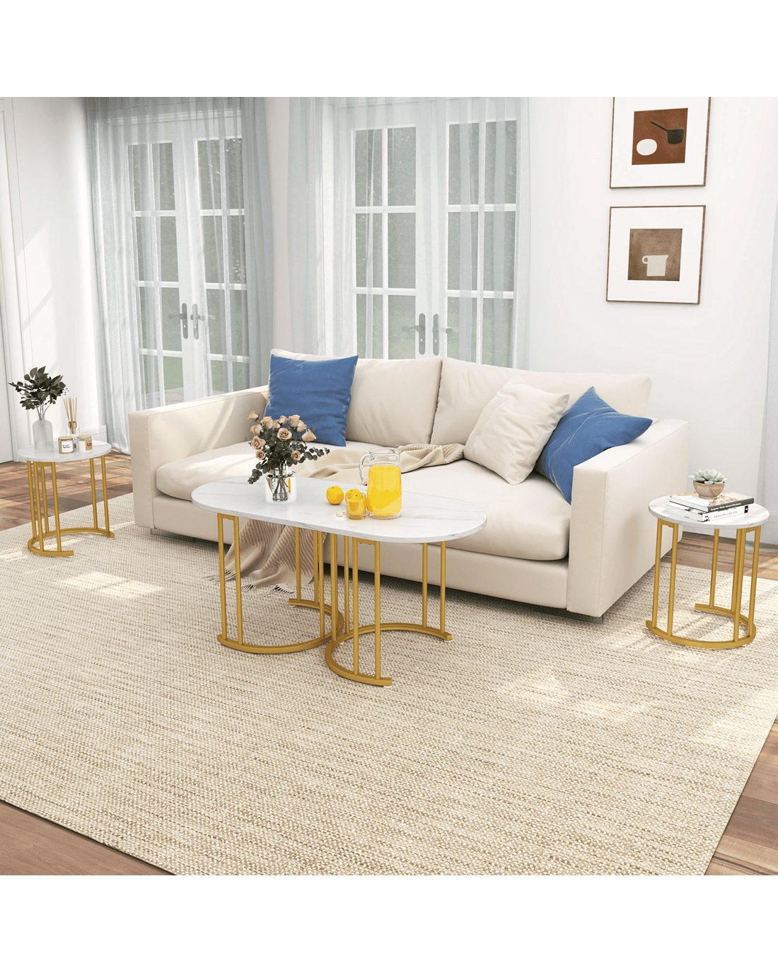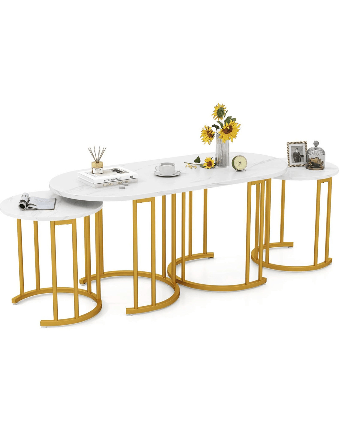 Costway Nesting Coffee Table Set of 3 Faux Marble Tabletop Center Cocktail Table