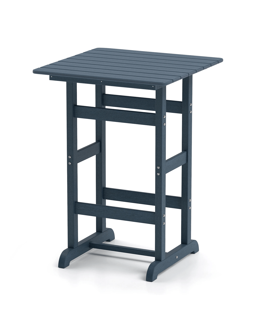 Transform your outdoor area into a stylish and functional gathering spot with this square bar table. Crafted from premium HDPE material and fixed by stainless steel screws, this table is designed to resist weathering and fading, withstanding long-time outdoor use. The generous slatted tabletop can easily hold various items, from cocktails to appetizers The 106 cm height makes it a perfect match for bar chairs between 65 cm and 80 cm in seat height. Moreover, the reinforced crossbars ensure higher stability. The modern design of the bar table enhances the elegance of any outdoor space, from balconies to poolside areas. Whether hosting an evening dinner or enjoying a quiet afternoon, this bar table with exquisite details stands as an impeccable addition to any outdoor setting.
