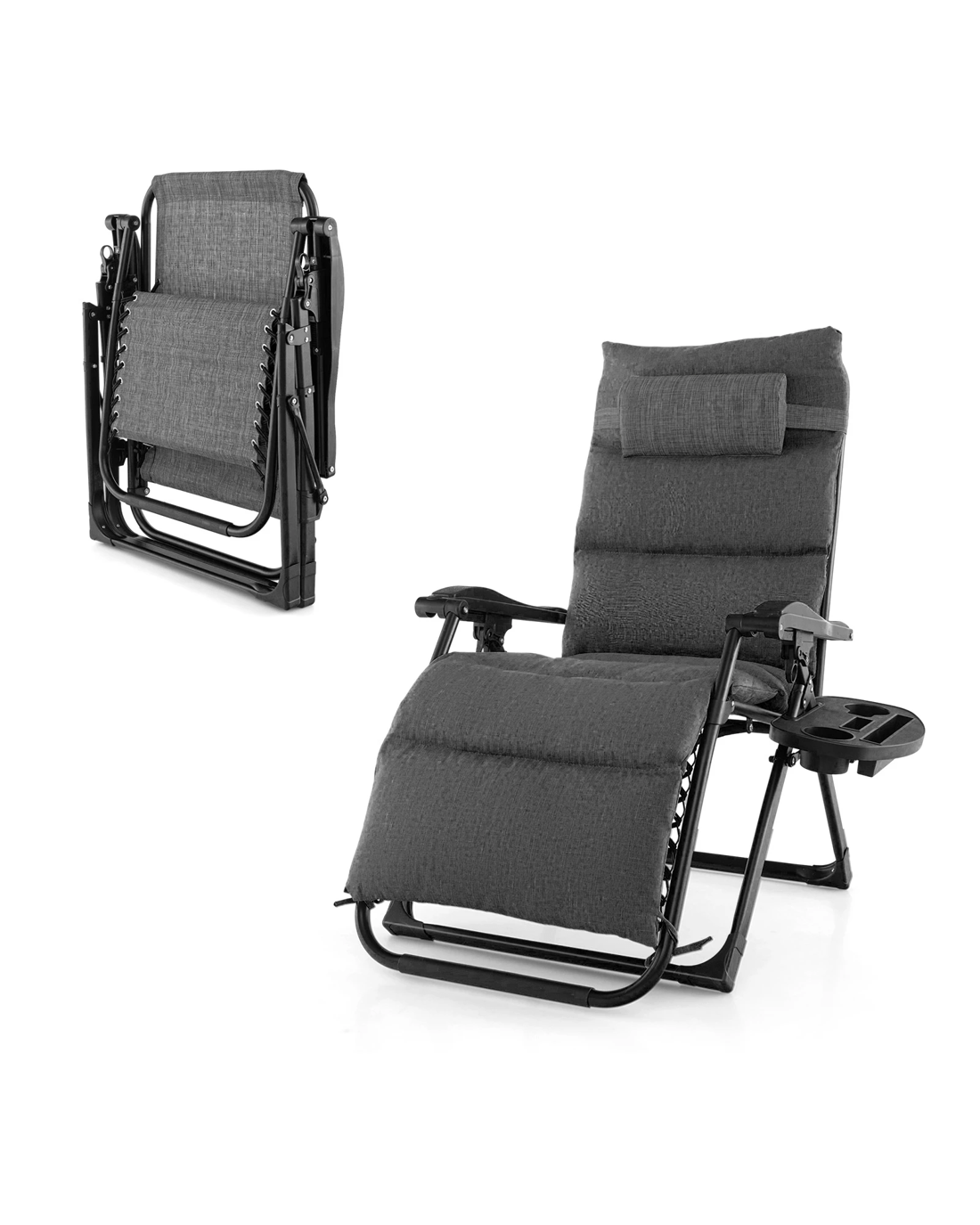 Costway Outdoor Sun Lounge Folding Recliner Adjustable Zero Gravity Chair w/Cup Holder - Grey
