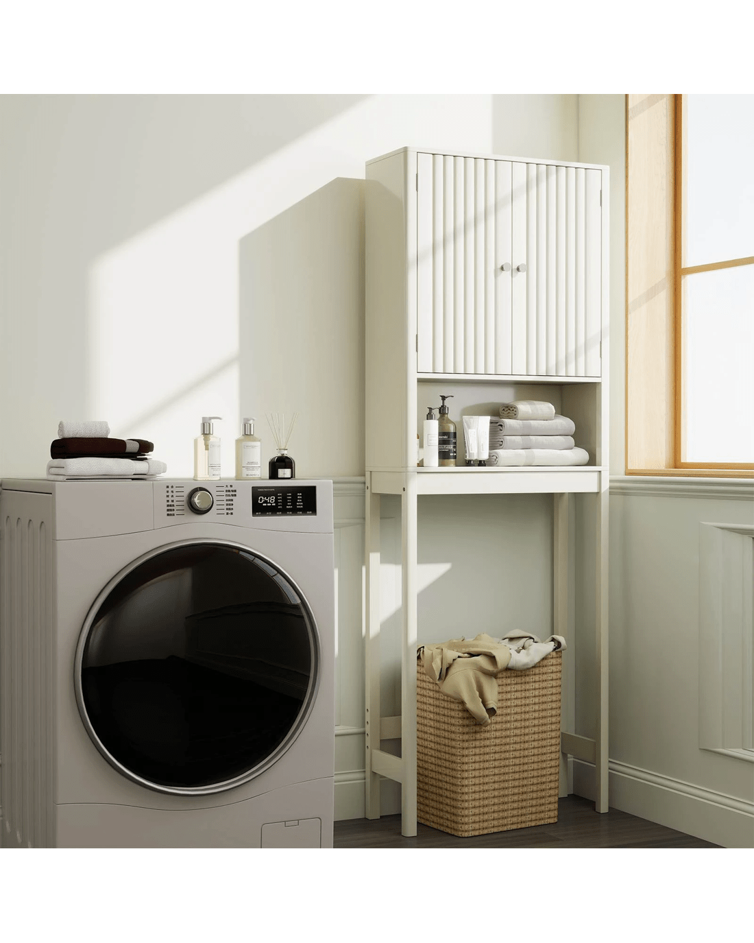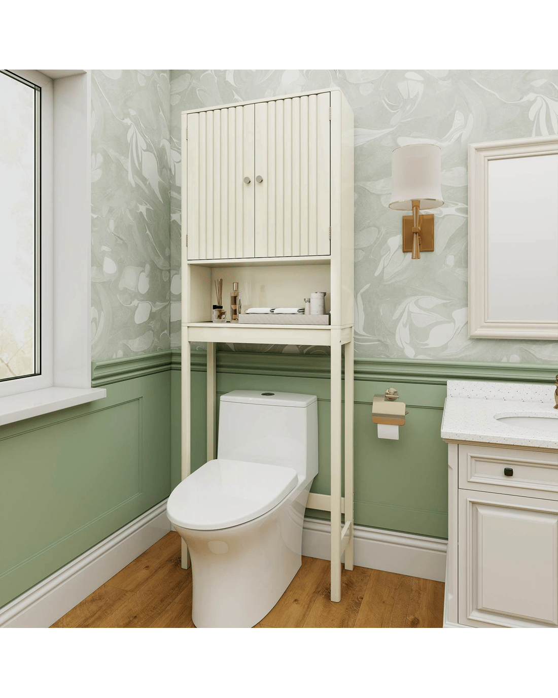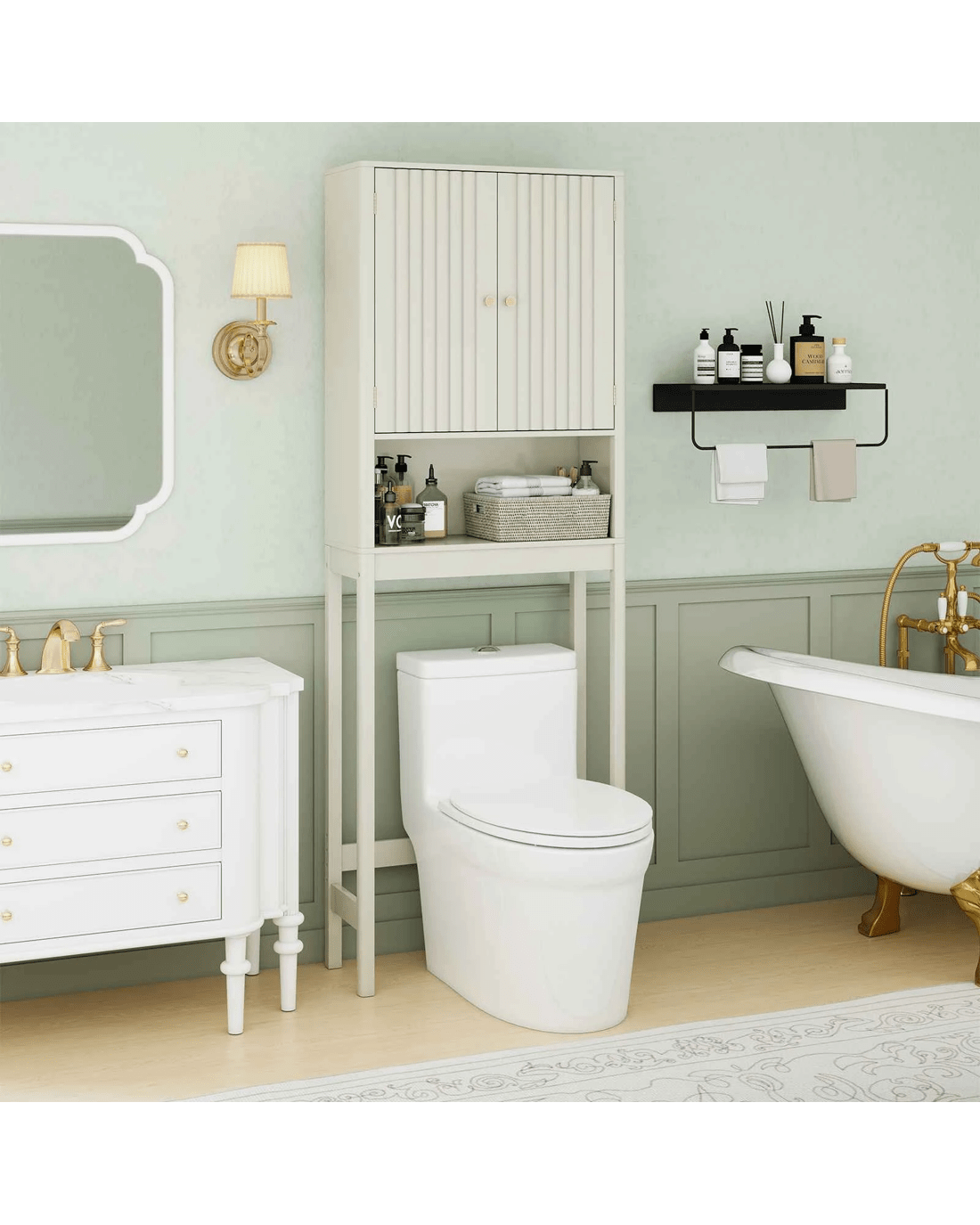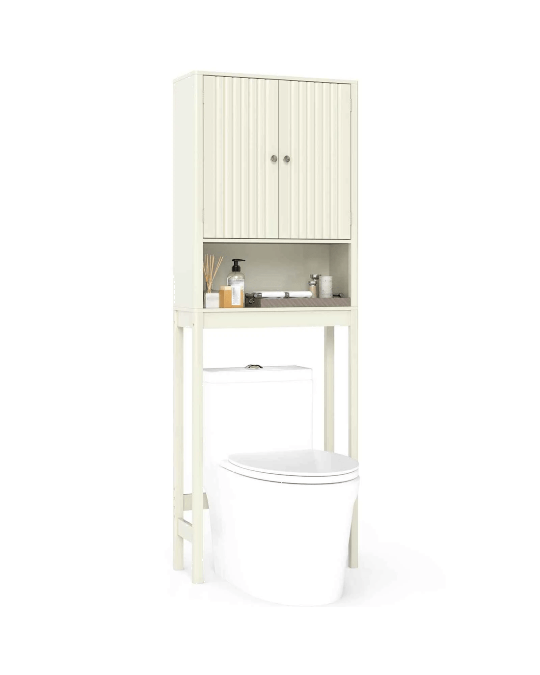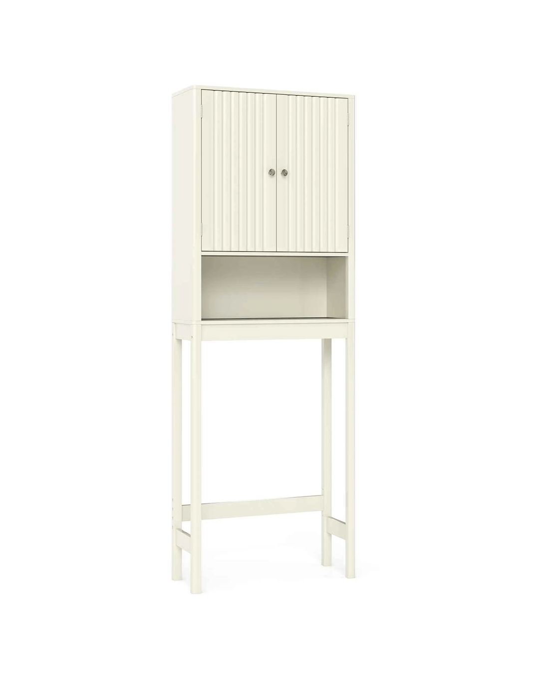 Costway Over The Toilet Bathroom Storage Cabinet Freestanding Rack w/Fluted Doors