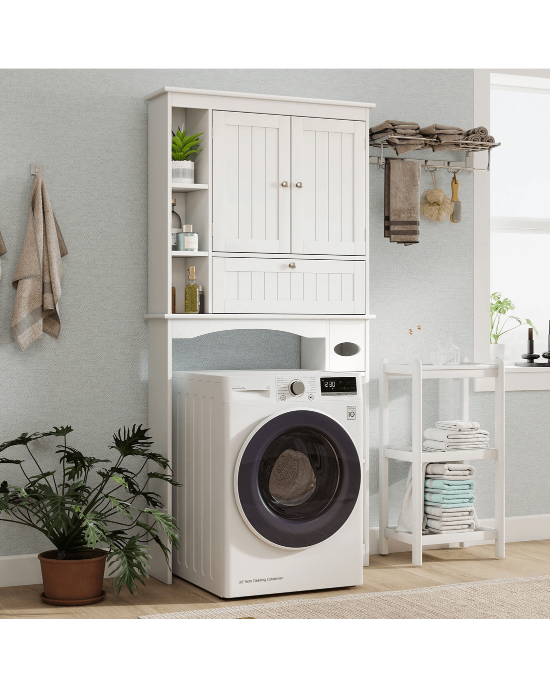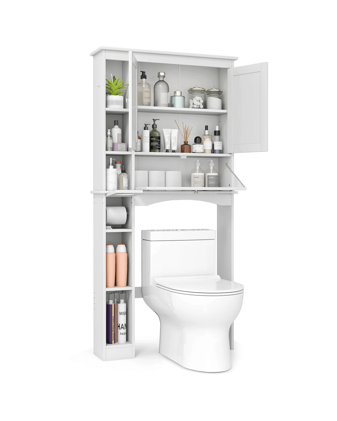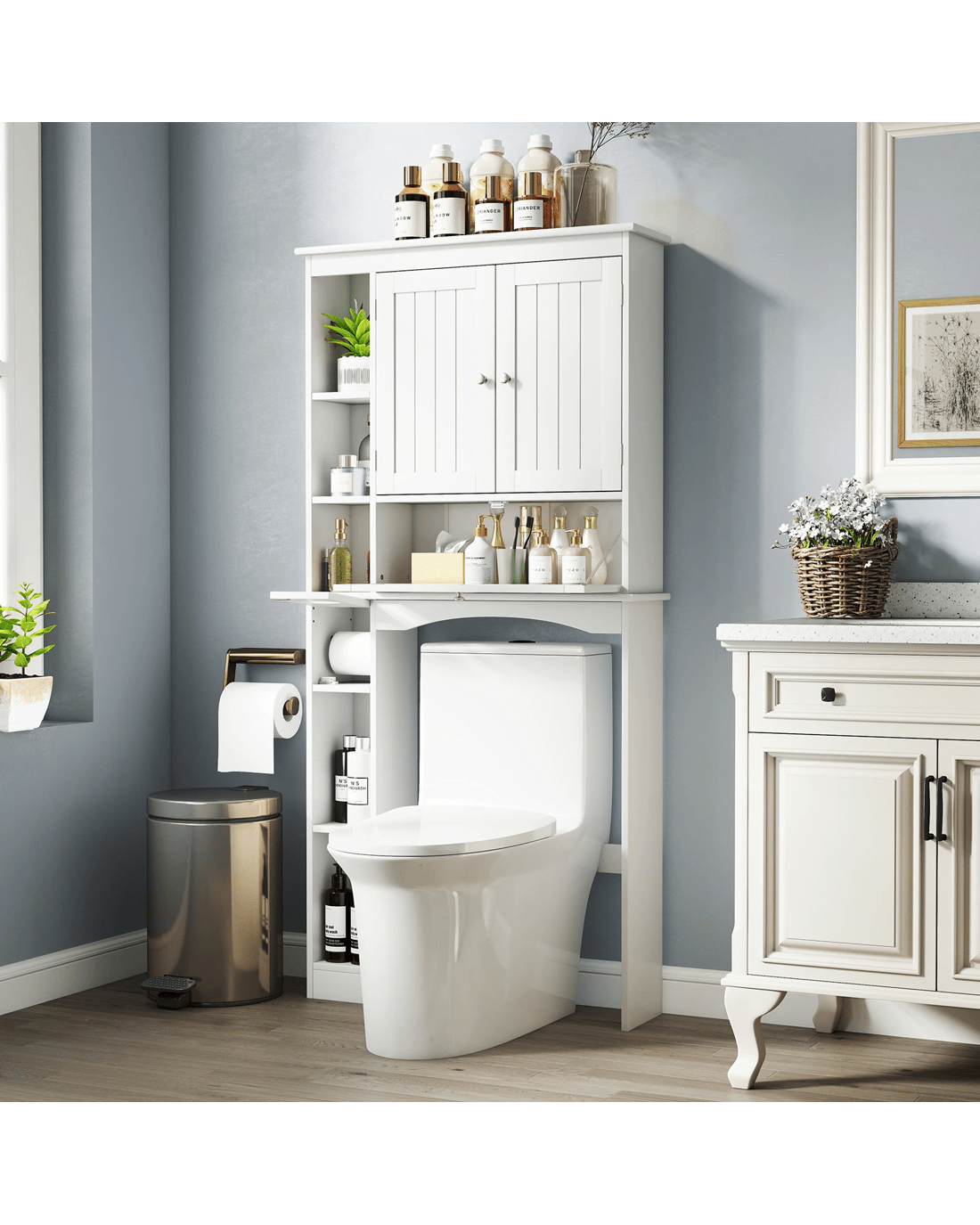 Costway Over The Toilet Bathroom Storage Cabinet Rack w/2 Doors Tissue Box Laundry