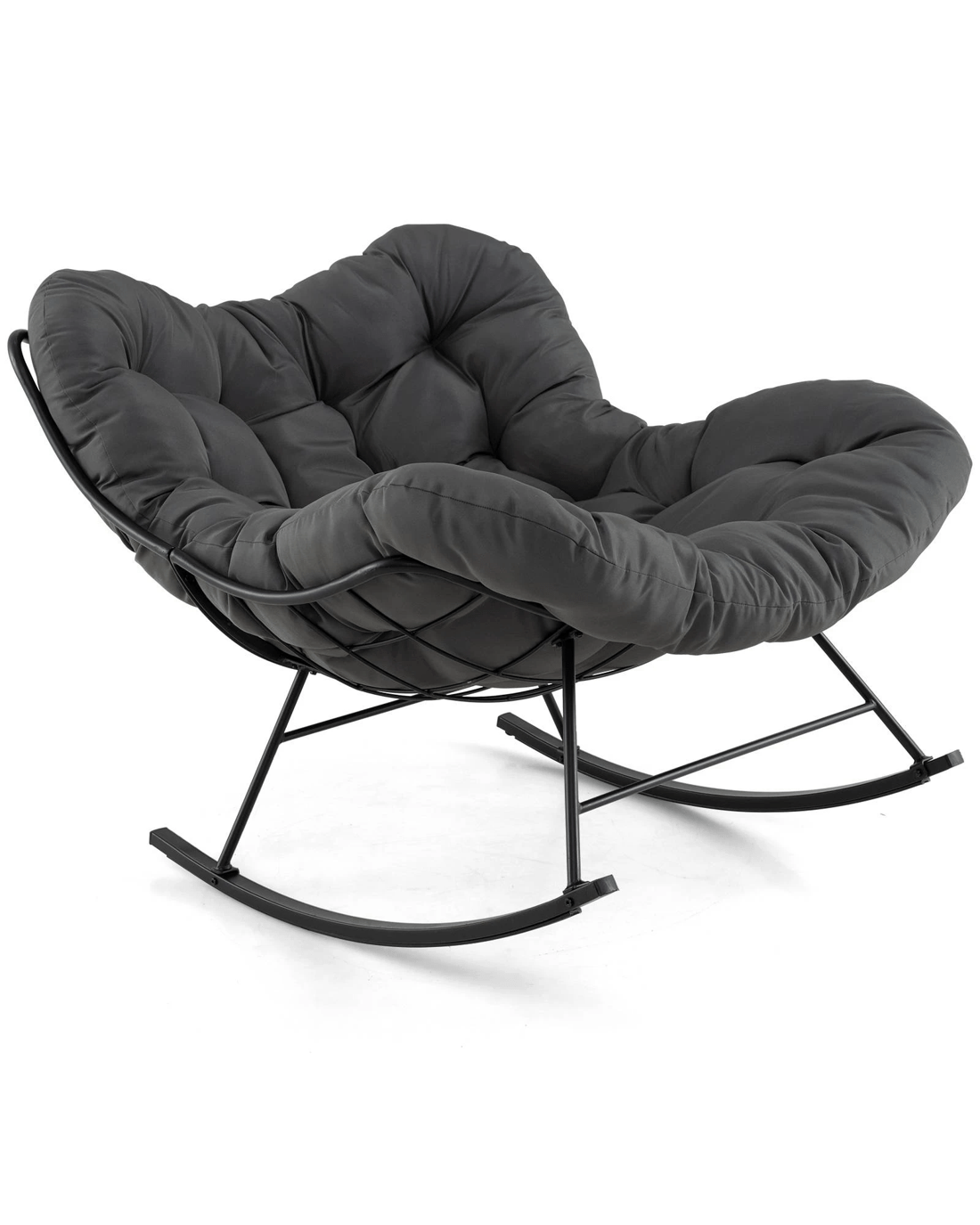 Costway Patio Rocking Chair Papasan Chair w/Padded Cushion Lounge Chair - Grey