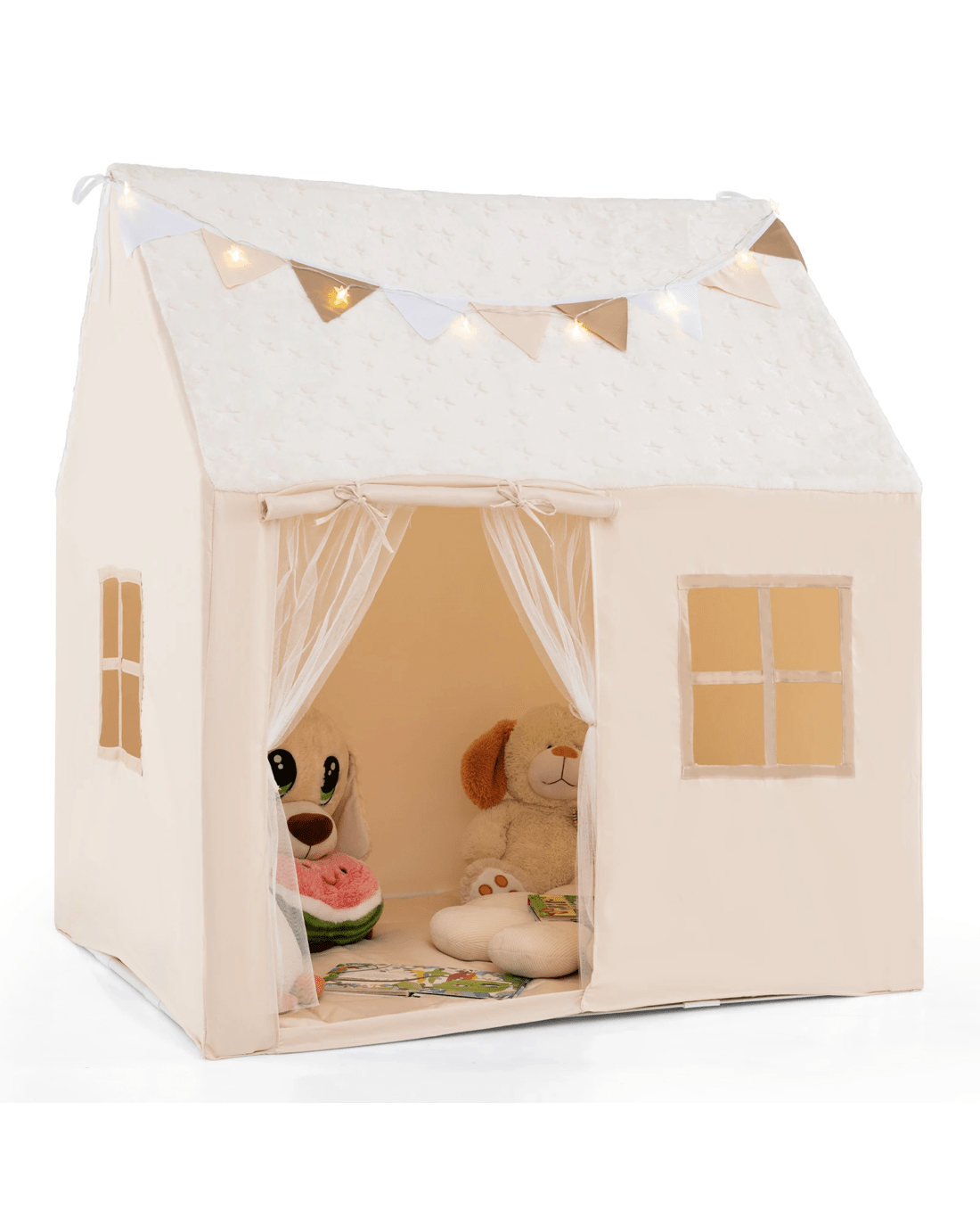 Sold by CostwayCostway Play Tent Large Playhouse w/Star Lights & Padded Mat - Beige