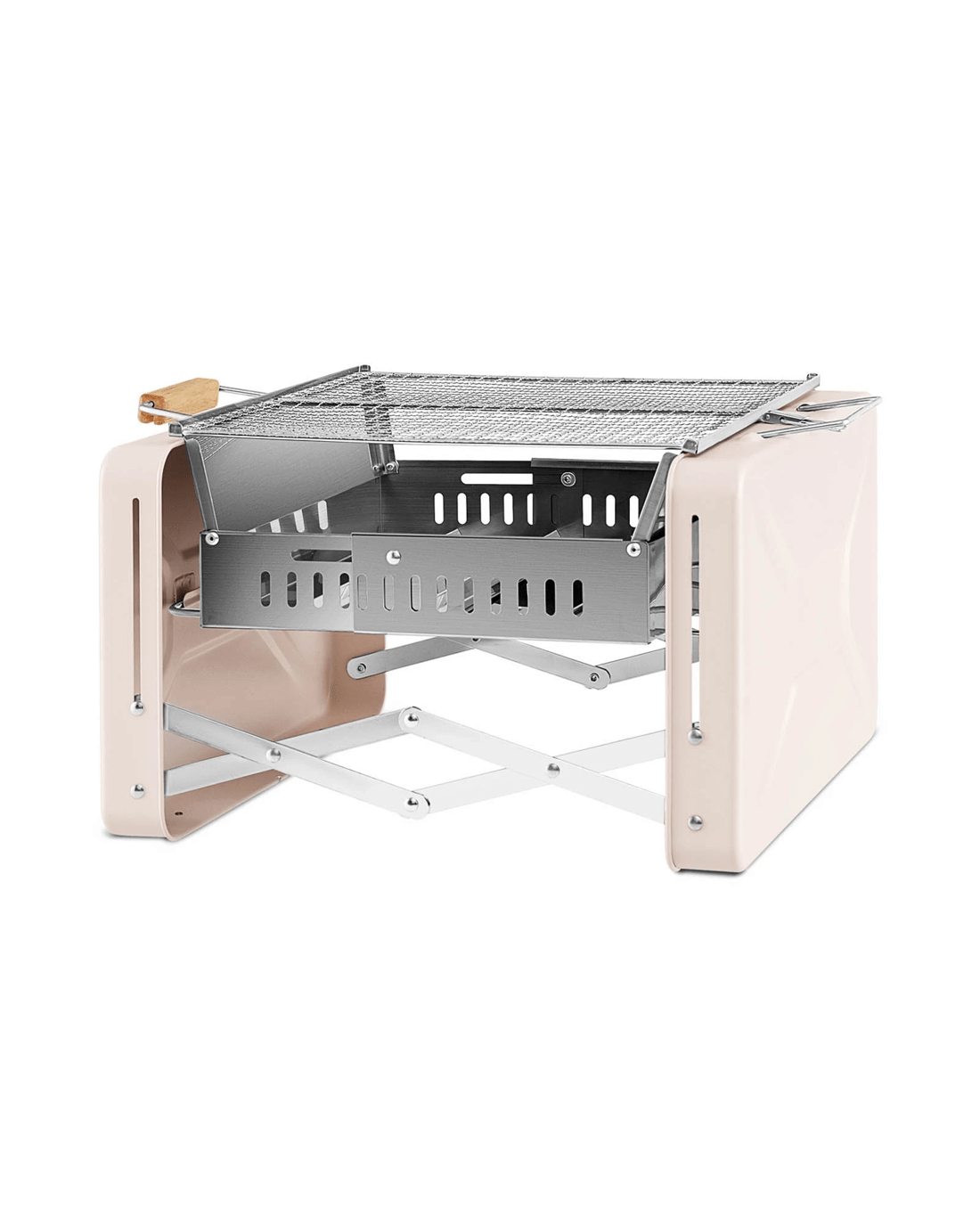 This small BBQ grill combines portability with functionality, making it an ideal option for camping trips, picnics, or outdoor parties. With 2 stainless steel grill grids, it offers a sufficient cooking area for you to cook a lot of food. Moreover, the foldable structure makes it easy to set up and fold for instant use and easy carrying. After being folded into a compact suitcase, the charcoal grill, which is only 2.5 kg, can be effortlessly carried by using the portable handles. The robust carbon steel and stainless-steel materials allow for excellent heat resistance and long-lasting performance. Furthermore, the scald-proof rubber wood handgrip ensures safe transportation. It is also equipped with locking latches and multiple air vents.