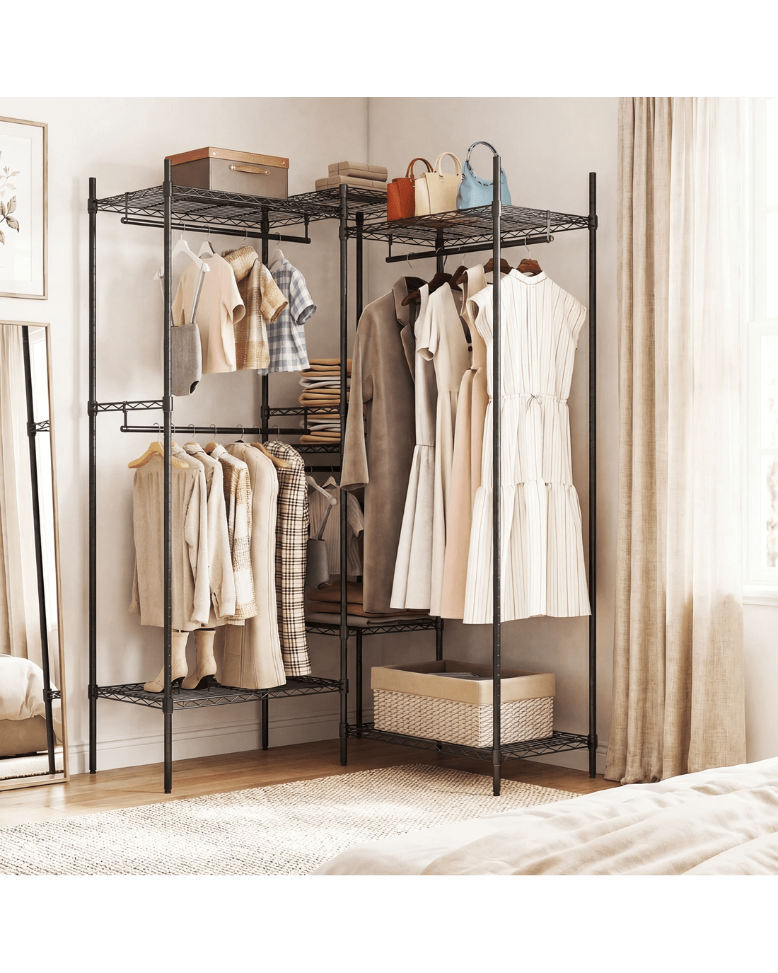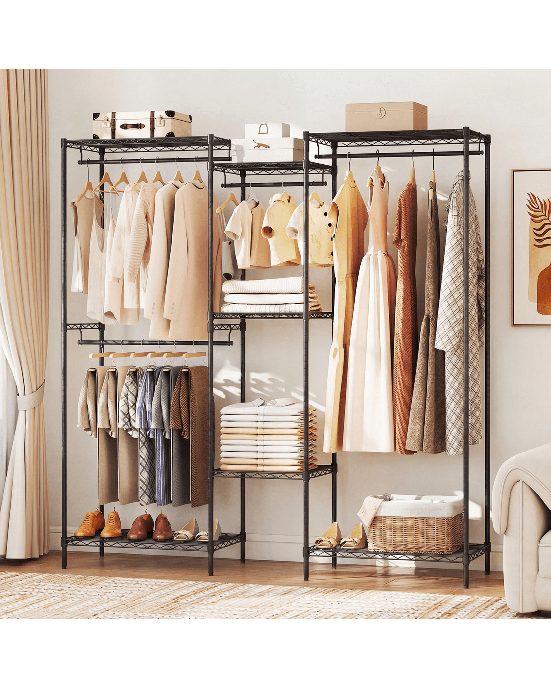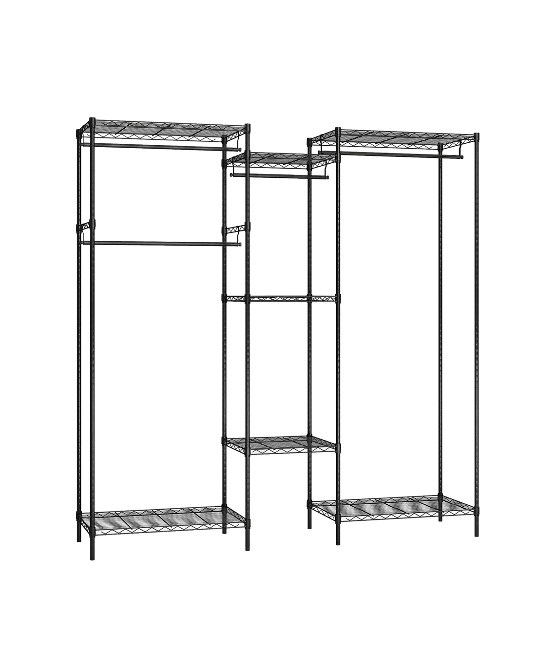 Costway Portable Wardrobe Clothes Organiser Metal Garment Rack w/Adjustable Shelf & Hanging Rods - Black