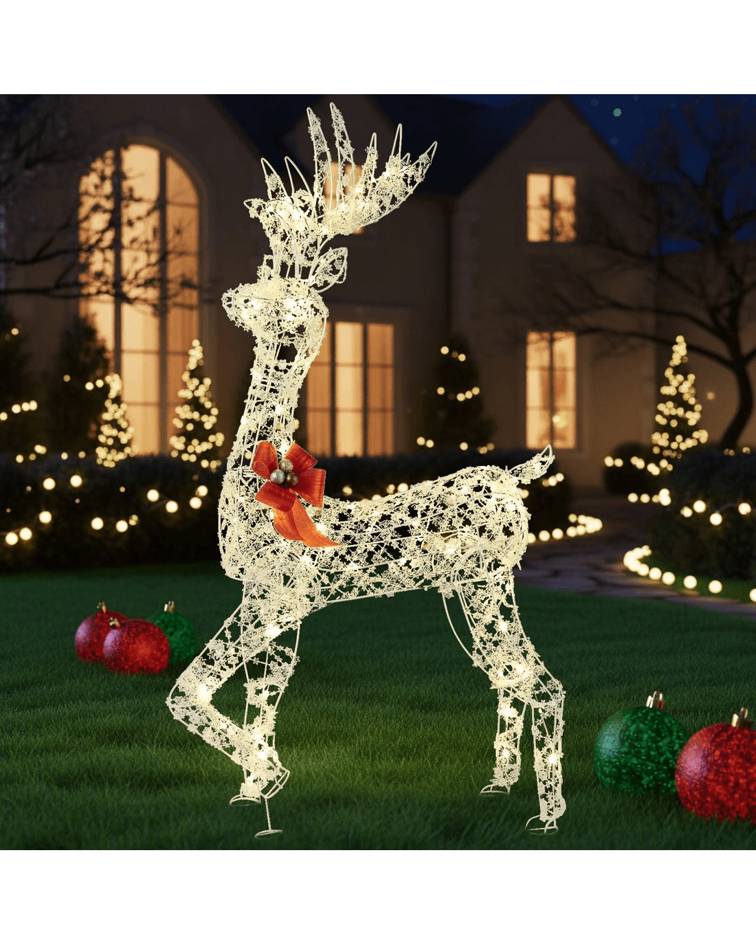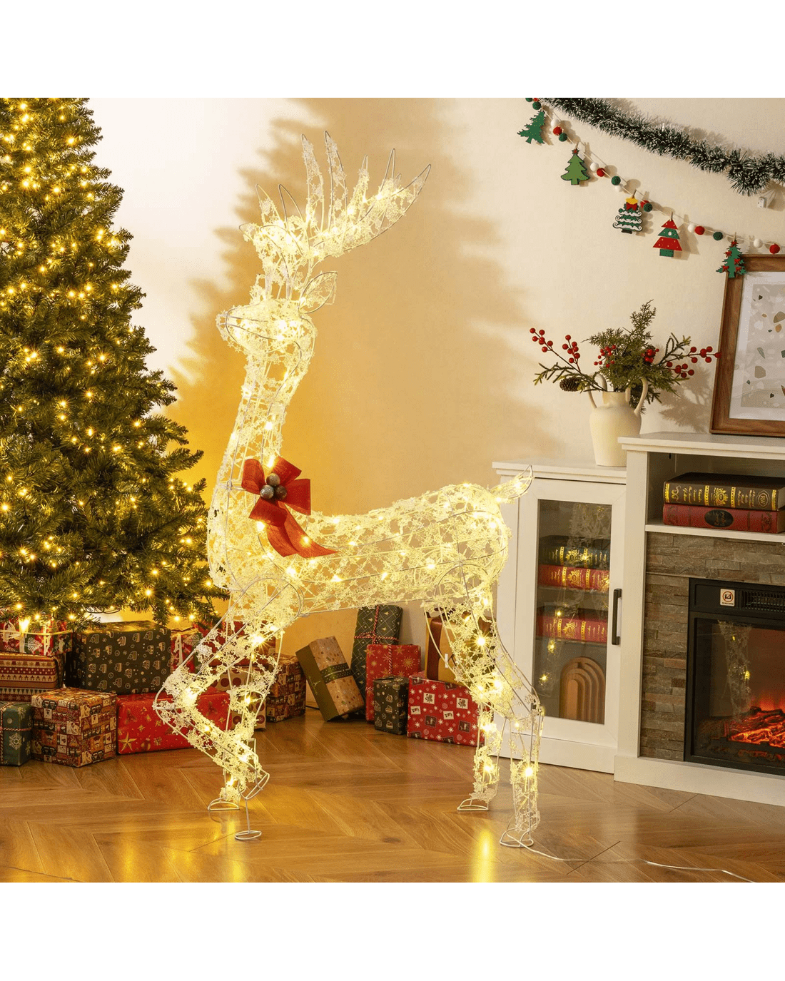 Costway Pre-Lit Christmas Reindeer 1.5M 3D Standing Buck Deer Xmas Holiday Decoration w/LED Lights